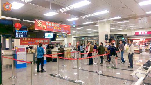 金門縣政府在台北松山航站設立「金門縣鄉親服務處」及「聯合候補單一窗口作業」,自2月5日起至2月7日(除夕)連續三天,受理候補回金門過年的鄉親「聯合補位」服務。另台中、嘉義、台南、高雄機場,也由縣府中區與南區服務中心結合同鄉會設立鄉親服務台,為金門鄉親服務。 縣府松山航站金門航線「聯合補位服務處」,今年設在國際線6號島櫃(可由C門入口進入),縣府由觀光處許績鑫副處長領隊,並特別調用辦理春運經驗豐富的港務處主任王建貿一行10餘人及10名工讀生組成服務團隊,承縣長陳福海指示,務必站在服務鄉親的角度用心,做好相關事前準備,故提前於2月4日前往布置,布置過程承蒙民航局副局長方志文及台北航空站主任朱耀光等到場關心並提供設備及桌椅等協助,順利於晚上八時許布置完成,提前用心看待鄉親需求,務求作好鄉親返鄉過節團圓任務。 縣府於台北機場設立之「聯合候補單一窗口」作業時間從一早清晨五時三十分航站開門即開始。已訂妥機位者,請直接至各航空公司櫃台辦理劃位登機手續;沒訂機位者,一律至「聯合補位登記單一窗口」辦理補位登記。 今年松山航站聯合補位,立委楊鎮浯亦將設立服務處參與服務,並有北區金門同鄉會調派志工加入,要給返金鄉親更貼心的服務。另交通部於春節期間,規畫A、B、C三項輸運應變方案,備妥民間客輪及軍機等(搭乘均須付費)協助輸運需要,若有啟動,金門縣鄉親服務處會在現場廣播宣布,請鄉親留意,並配合相關的登記、登機,或專車接駁搭船作業。