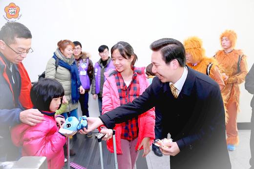 今天就是小年夜了!在農曆春節除夕前,旅台在外各地的金門鄉親已開始陸陸續續攜家帶眷,手上提著大包小包的行李和年貨禮物返鄉;金門縣長陳福海偕航空站主任洪念慈於入境大廳,他們迎接每一位返鄉鄉親,遞上猴年福袋、暖暖包,小朋友送小玩偶,歡迎大家回金過年,並祝新春快樂、闔家平安幸福! 春節瞬屆!尚義機場入出境大廳已湧現返金及返台過春節假期的候機人潮,預計在今、明天除夕日會達到春運疏運的尖峰階段,縣府全力動員做好返鄉過年服務工作,使鄉親都能返家與親人團聚和圍爐,共享天倫之樂和歡度新年。 於今年新年伊始,陳縣長就把旅台在外鄉親返金過年的機位需求擺第一;於今年開春首次的縣府主管會報中,陳縣長就關心即將來到的春節鄉親返鄉輸運的議題,並在會中說,去年的春運工作是有感的,今年的春運是挑戰,並下達「只許成功,不許失敗」,全力做好春節返鄉輸運工作。 陳縣長又在相隔一個星期的第二次縣府主管會報,他再度重申春運援例「只准成功,不准失敗」,各主辦、協同單位一定要確實動起來;陳縣長並請縣府觀光處研議更簡便、快速的通知補位、候機方式,儘量減少大批旅客在機場苦等,以提升服務的品質、滿意度及讓鄉親有感。 隨著年關接近,陳縣長於一月十八日親赴民航局及各家航空公司拜會,並協調春節第三波加班機,預計加開十一班次,讓旅外鄉親都能歡喜返鄉共渡一個溫馨、快樂的新春假期。 昨日是農曆十二月廿七日,離金猴年春節很近,陳縣長在縣府觀光處長李增財、民政處長王中聖和建設處農林科長鍾立偉等人陪同來到機場入境大廳,與航站主任洪念慈及航站人員一起迎接鄉親返金過新年,一一遞上猴年福袋、暖暖包,小朋友拿到小玩偶,感到十分的高興! 在機場迎接鄉親返金過年時,建設處農林科的大金(水獺)人偶也在觀光處貼心安排下到機場一起歡迎返鄉過年鄉親,受到大小朋友的喜愛,與可愛的大金合照留影笑呵呵!另,現場還有風獅爺和鼓陣,響亮的鼓聲,讓旅客和返金鄉親感受到濃濃的年味,新春到了! 陳縣長受訪表示,歡迎旅台在外的金門鄉親返家過年,與親人圍爐團聚迎新年,並與航空站合作迎接鄉親返金,並準備精緻小禮品福袋及玩偶、暖暖包送給大家,祝春節快樂!同時,他指出,在即將過去的金羊年一年裡,金門島無災無難,縣民安居樂業,也過得很幸福。 迎接鄉親返金過年,陳縣長表示縣府和所屬各單位都舉辦有新春活動,讓所有返鄉鄉親可以過一個歡樂的好年,包括有林務所鬱金香花房、百合花特產及風車景觀區;農試所以在地生產的安全蔬菜進行景觀配置,並透過蔬果當底圖的「I LOVE KINMEN」大型字圖,強調「吃在地,食當季」的低碳飲食理念;畜試所以豐富有趣又充滿營養好食的畜產飲食,吸引離鄉遊子對於故土優質畜產的回味;水試所蝦猴展與剖蚵體驗,則希望讓更多人注意海洋經營永續的重要,並使鄉親回家過個好年,歡渡愉快的春節假期! 金門航站主任洪念慈表示,今年的春運有九天,但整個疏運共有十五天,預計今年的春節連假約有十二、三萬旅次;其春運尖峰時段在昨天和今天、除夕旅客會較多。至於返台大約在十二、十三、十四日三天,旅客人數會多一點。 洪念慈表示,今天的春運航班,從金門啟航的班機將開到晚間九時五十分。如果有臨時的春運疏運需求,將會請航空公司加開臨時加班機,以疏運旅客和服務。另,今年為歡迎鄉親返金過新年,航站和縣政府準備有福袋、小玩偶給旅客和小朋友;尤這兩天天氣特別冷,並有暖暖包,給鄉親回家有一個暖暖年! 縣政府與金門航空站春節舉辦「猴年慶團圓,返鄉過好年」慶祝活動一連兩天,昨日上午十時至十二時,由金門電音COMEBUY團表演「電音舞」;下午二時至四時,由金門弦樂四重奏表演「弦樂演奏」。 另,「猴年慶團圓,返鄉過好年」慶祝活動今(六)日上午十時至十二時,金門高中熱舞社表演「金舞門」,下午二時至四時,由金門傳統音樂館歌謠班及金門高中弦樂社表演「新年歌兒大家唱」。屆時,陳縣長及航空站主任洪念慈將率隊迎接,發放福袋給返鄉過年鄉親,分享過年喜氣。