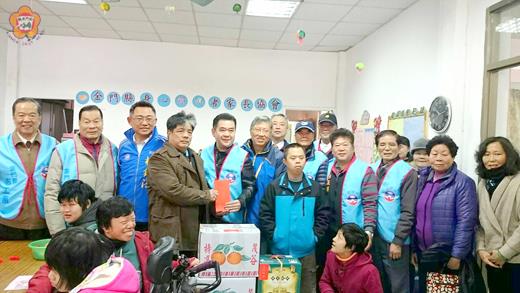 歲末寒冬,年節腳步已近,中國國民黨金門縣黨部結合金門縣民眾服務社、縣黨部志工團、青工會、立法委員楊鎮浯服務處,5日上午到金湖鎮金門縣身心障礙者家長協會關心慰問,瞭解社團需求,適逢其學員冬令營活動尾聲,學員展露開心純真的笑容歡迎訪客到來,氣氛相當溫馨。 國民黨金門縣黨部主委林芳旋、縣民眾服務社理事長陳金福、常務監事王添泉、理監事、立法委員楊鎮浯、國民黨中央委員陳天成、志工團團長王水彰、副團長陳炳仁、鄭慶利、顧問董水輪、金湖民服社主任陳向鑫、縣黨部專職同仁、青工及志工伙伴一行人,5日上午前往探慰弱勢朋友,寒冬送暖,表達關懷之意,除致送慰問金外,理事長陳金福也贈送貢糖禮盒、中央委員金城鎮代表會主席陳天成也備水果禮盒,提前賀節!