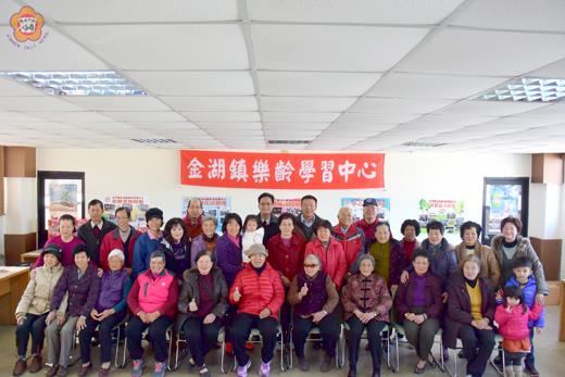 金湖鎮樂齡學習中心4日舉辦104年結業儀式暨頒發學員證活動,鎮長蔡西湖與鎮代會主席呂瑞泰擔任頒獎嘉賓。蔡西湖表示,很開心看到今天有這麼多長者一同來參與結業儀式,活到老學到老這句話,雖然籠統老套,卻很實際,看到長輩們開心的笑顏及充滿成就感的容顏,真的感動在心頭,期望在105年度的課程,在座的長輩們一同呼朋引伴,兄弟姊妹伴都一起帶出來,一起忘記年齡勇於學習,牽手一起邁向樂齡。呂瑞泰則說,看到一旁的學習成品,可以想像長輩們參與時認真的樣子,樂齡的課程除了增進長輩們的知識以外,還能增進長輩的自信心,祝福我們金湖鎮樂齡學習中心可以一年比一年更茁壯,學員一年比一年還要多。 金湖鎮公所表示,本次活動的頒發名單為104學年參與本中心課程的總時數達50小時以上的長輩們,本中心期望藉由頒發結業證書與學員證,來肯定長輩們這一年來的努力,以及凝聚長輩們的向心力。在鎮長與主席的大力支持下,本鎮樂齡中心已逐步成型,期望在今年能成為一個新的長者學習據點。活動會場除了展示長輩們這一年來的學習成品外,也提供與會的長輩們一個學習交流空間。