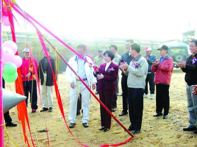縣長夫人擲瓶金安一號救生艇正式下水啟用