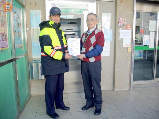 圖文/陳冠霖 年關將近,為提供民眾一個過好年及好過年的治安環境,金湖分局分局長鄭鴻文要求各分駐所針對轄內財物匯集處所實施環境檢測及犯罪預防宣導,藉以提升自我防衛意識,以減少被害。 日前金湖分局針對轄內金融機構、超商、加油站及各大賣廠等財物匯集處所逐一進行環境安全檢測及犯罪預防宣導,提醒各業主再一次檢視監錄系統及保全系統是否正常運作,以強化自我防衛意識及危機管理。 金湖分局分局長鄭鴻文表示,春節期間人流、車流及錢流,均會比往常更加熱絡,警方將秉持警察用心、民眾放心、安心三心警政治安策略,期使達到治安平穩、交通順暢,使民眾歡樂渡過春節連續假期。