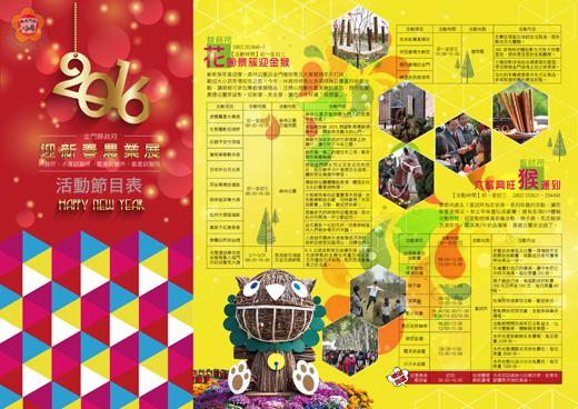 丙申金猴年屆臨,金門縣政府為服務返鄉過年鄉親並提供新春好去處,特別印製了春節活動摺頁,從大年初一至元宵,縣府精心規劃了一系列28處遊玩全攻略,希望藉由金猴年的到來,帶給金門全體鄉親和訪客不一樣的全新感受。 1.★林務所:花團景簇迎金猴 初一至初三/09:00-16:00活動項目:遊園驚喜大樂透、生態電影拓視野、祈福平安竹添福、檜筷樂樂動手做、百年好合百合展、民俗風情送福氣、桿桿進洞奪大獎、松林大道蔭福氣、紫千紅總是春、像霧似雨如仙境。聯絡電話:082-352846-7 2.★金門植物園 初一至初三/09:00-16:00活動項目:老兵故事真精彩、球型劇場大解密、環形劇場述金門、碉堡旅訊樂探索 3.★花間漫遊樂悠遊金猴報喜入福門花彩迎賓亮大道(林務所),繽紛景緻猴迎春波斯菊花喜綻放(農試所) 地點:慈湖路下埔下路段、交通要點,金城夏墅社區、烈嶼鄉、農試所 4.★畜試所:六畜興旺猴運到 初一至初三/09:00至15:30 活動項目: 古早味童玩挑戰賽、可愛動物撲滿彩繪(09:00-12:00/13:00-15:00) 桶子雞(10:00-14:00) 滾草球(09:00-12:00/13:00-15:30 影片欣賞(9、10、11、13、14、15點播映) 馬匹拍照騎乘(09:00-12:00/13:00-15:30)。 鮮奶、霜淇淋、沙沙冰品嚐(09:00-11:30/13:50-15:00) 5.★農試所:金猴獻桃耀新春 初一至初三/09:30 活動項目:親子休閒烤肉趣、田園歡焢土窯樂、低碳遊園自行車、磨磨小麥親體驗、農特產品展售暨美食品嚐園遊會、農業展覽暨特色農作物展示、美觀美味果雕展;卡通人偶來拍照、開心農場自然遊、悠然漫步彩虹橋。 遊園闖關換大禮、歡樂對對碰好禮三選一/初一至初三/09:00-12:00/13:00-15:30 農村趣味動手作10:00、11:00、13:30"14:30 小麥啤酒DIY/初二/09:00 6.★水試所:2016迎新春浯島媽祖平安鹽祭暨海洋文化展 初一:浯島媽祖平安鹽祭祈福祭禮儀式/9:00-12:00/天后宮 初一至初三:表演及園遊會/08:00-16:00/天后宮及水試所前廣場 初一至初三:平安福袋迎平安繽紛氣球大放送/10、12、14、16點四個時段/天后宮及水試所前廣場。鱟運樂翻天闖關集戳活動、蝦猴特展、蠔運連連剝蚵體驗、鱟生態文化展、黏黏有魚(海中金條黃花魚紙雕DIY)、金猴炭烤饗宴、動動腦水族知識大考驗闖關活動、小小魚兒要回家益智闖關遊戲,富貴有魚自由垂釣,童話城堡樂消遙,歡樂人偶賀新春/08:00-16:00 保育總動員海洋景片欣賞/08:30開始 7.★金門文化園區:初一活動項目:迎春賞玩.傀儡戲(10;30-20:30)、初二:緣繫青花瓷.初二回娘家、初三:迎春祈福.初三尬輦大賽 8.★金城民防坑道:螢光探秘迎新春時間:初一至初七春節期間每天10:30、11:30、13:30、14:30、15:30、16:30、17:30、18:30、19:30、20:30。 9.★總兵署春節博彩趣·擲骰子博彩品 初一至初七(09:00-22:00)★總兵署前廣場:美食、農產、童玩、歡樂園遊會 初五(09:00-17:00) 10.★金湖體育館前廣場:迎春美食園遊會 初四 09:00-16:00 11.★防疫所 今年防疫所已於一月二十三、二十四日,以及一月三十、三十一日每日上午九時至下午四時(中午不休息)先行辦理迎新春活動。 活動項目:包括狂犬病預防注射、寵物登記、醫療諮詢、動物保護觀念宣導及可愛動物認養。凡於活動期間攜犬至該所參與活動者,該所將免費贈送八合一疫苗一劑(每日活動限額三十劑)。 12.★金門國家公園管理處預定於105年2月07日至2月13日於金門名城有線電視台託播「夏日追風-栗喉蜂虎生態紀實精華版影片」(片長25分鐘)、「大地傳奇-金門地質地形」(片長15分鐘)等影片,時間為每日下午1時至2時,頻道為33台,影片長度合計為40分鐘。 13.★社會福利館:初一至初七(09:00-16:00)親子活動室開放、健身房開放。 初四至初七(14:10-17:00)電影欣賞:11日飛寶、12日鯨騎士、13日加菲貓-大明星歷險記、14日神鬼奇航-幽靈海 初六(10;00-15:00)金猴迎春.福滿金門園遊會 14.★文化局演藝廳:金猴騰祥喜年來2/13初六(19:30)金猴騰祥~春節序曲音樂會2/21(15:00)新市里籃球場:金猴喜鬧元宵~愛管絃事新春音樂會 15.★莒光樓:迎春影片播放時間:初一至初七春節期間每天9:30~11:30、15:00~17:00、19:00~21:00 16.★搭電瓶車遊古龍頭:搭乘電瓶車悠遊林厝和平公園、戰史館、北山播音牆、播音站 開放時間初一至初七(09:30-11:30/14:00-16:00地點:古寧頭和平公園 初一至初三 活動項目:石蚵產業文化館展覽、石蚵之家美食館石蚵嚐鮮(09:00-17:00) 17.★柳營步兵軍事體驗園區:軍事訓練,戰地體驗! 初一至初七 時間:9:00~12:00、13:30~16:30 18.★獅山砲陣地:戰地尋秘看砲操。 初一至初七 開放時間:08:00~12:00、13:30~17:30砲操時間:09:00、10:00、11:00、13:30、14:30、15:30、16:30 19.★西洪二營區-神乎漆技-猴塞雷(漆彈活動體驗) 初一至初七(09:00-12:00/13:30-16:30) 20.★台灣好行悠遊金門(除夕夜停駛)金城車站發車:A線每日上午08:30、B線每日下午13:30山外車站發車:C線每日上午08:30、D線每日下午13:30 21.★擎天之旅-太武明德走春行遊程:擎天廳、排雷紀實館、明德公園、胡伯玉將軍紀念館。搭車處、時間:2/8-2/14(初一~初七)(1)山外車站:08:50、10:20、13:50、15:20(2)沙美車站:08:40、13:40(3)金城車站:08:30、10:00、13:30、15:00(二段票價) 22.★烈嶼鄉保生大帝廟:擲筊試手氣,轎車開回家。 初賽:2/8/9/08:00-21:00 決賽:2/10/08:00-12:00活動項目:園遊會、表演活動、慶系列活動、尋寶活動初一至初二/09:00-16:00 23.★烈嶼青遠湖·新春樂釣、年年有餘 初二 24.★烈嶼保生大帝巡安活動 初四(13:00-17:30) 25.