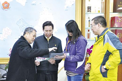 由交通部運輸研究所開發的Android與iOS版「金廈e條龍show三通」App,今日上午10時將於金門尚義機場到站出口處進行這項應用軟體的推廣活動。 為了提高這項應用軟體開通的能見度,交通部運輸研究所邱永芳主任昨日下午專程到府拜會縣長陳福海,除了向陳縣長詳細介紹這項軟體的5大特色,邱永芳也有信心在縣府的協力推廣下,提昇這套應用軟體更多的附加價值,幫助旅客多加利用,適時掌握陸海空交通航班及港口海氣象資訊。 對於APP所提供的全面性、加值性及便利性資訊服務,陳福海在邱永芳近距離示範操作後,也讚不絕口,他同時寄盼,經過推廣後,所有鄉親都能上手並好好的利用。