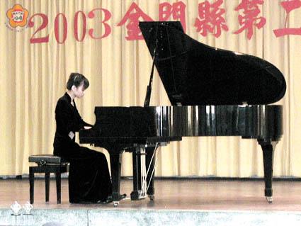 由金門縣音樂協會主辦的「2003年金門縣第二屆鋼琴比賽」,昨日舉行最後階段的決賽,入圍者報名參加決賽人數有八十七人,在金門縣音樂協會聘請台省具音樂素養老師擔任評審,各組績優並獲主辦單位立即頒發獎狀、獎盃的鼓勵。 金門縣第二屆鋼琴比賽決賽,計分高中職、國中、國小低、中、高年組、幼兒組等六組進行。決賽並於昨日上、下午分組進行,同時聘請台灣地區專業鋼琴教師擔任評審,包括任教國立台北師範學院音樂系老師李薏新、胡心麗、楊淑媚(李薏新擁有法國巴黎師範音樂學院碩士,主修鋼琴;胡心麗擁有美國北伊利諾大學音樂研究所碩士,美國南卡羅來納大學音樂研究所博士;楊淑媚擁有美國北德州立大學音樂研究所碩士、博士)。而許多家長並陪同參賽子女到場、欣賞演出,及為孩子加油打氣。 金門縣政府教育局長盧志輝也撥冗到場觀賞比賽者彈奏,同時頒獎績優。金門縣音樂協會理事長許能麗也和理監事們投入比賽相關事宜的張羅和支援。許能麗也對於本屆鋼琴比賽,每位參賽者普遍程度提升,尤其是國中組參賽者更是進步神速,也對地區整體音樂水準提升冀以厚望。 至於決賽各組名次揭曉如后:高中職組|第一名戴巧琳、第二名倪郁嵐、第三名李昕曄;優勝|王立梅;國中組|第一名翁醇溶、第二名李政叡、第三名許哲綱;優勝|黃國殷、黃郁蓉、王晨、許欣婷、張鳳宜;國小高年組|第一名林彥均、第二名蕭柏凡、第三名董欣亞;優勝|李欣霓、許婕相、吳真、張容郡、洪筱媛、翁旖、許涵嵋、楊雲瀚、李宗鴝;國小中年組|第一名張博超、第二名張瑄文、第三名楊惠尹;優勝─王彥琳、翁一方、陳瑀凡、羅雅萍、黃心潔、吳采育、陳揚;國小低年組|第一名成欣玫、第二名李芷嘉、第三名李宣萱;優勝|蕭筑元、羅傑耀、蕭柏涵、洪韻凌、王捷、蔡香、何思妤;幼兒組|第一名李晨瑋、第二名洪紹棠、第三名陳柏孜;優勝|梁玲瑋、李其蓁。 金門縣音樂協會為提倡縣內音樂教育,讓學生彼此相互觀摩切磋琴藝,提高音樂演奏水準,暨發掘更多音樂演奏人才,俾有計畫培訓邁向國際演奏世界領域,所辦理的金門縣第二屆鋼琴比賽,比賽方式係採初賽、決賽二階段進行。 金門縣音樂協會表示,決賽各組績優前三名頒給獎盃、獎狀的獎勵,優勝者則獲獎狀的獎勵。另外,在決賽中,獲高中職組、國中組、國小組(高年級)第一名,並取得參加「九十二年度全國學生音樂比賽|鋼琴獨奏決賽資格」。至於九十二年度全國學生音樂比賽|鋼琴獨奏決賽,報名日期為九十二年十二月十五日至三十一日(將由金門縣政府彙報),比賽日期則在九十三年三月一日起在台中縣、市舉行(比賽確切日期、地點由大會另行公布)。