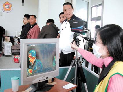 衛生署疾病管制局為強化防「煞」能力,經過連日的測試,昨日正式啟動裝置在水頭碼頭的「紅外線熱像儀」。明年元月份的「春運期間」,可望發揮快速過濾、嚴防疫情入侵的功效。 裝設在水頭碼頭旅客服務中心的兩部「紅外線熱像儀」,係由疾管局在上個月核撥給第一分局金門辦事處,經過了連日來的測試與校正後於昨日正式啟用,港務處處長張國土特別前往現場瞭解,肯定熱像儀的啟動將使台商中轉及鄉親往返大陸的通關流程更為順暢。張國土並指出,明年春節的「春運」,將自一月九日起至二月二日止,前後二十五天時間,預估每日將有一兩千人經由小三通管道進 出,該項儀器的啟用將使通關動線更為流暢。 金門辦事處則表示,紅外線熱像儀在十一月份即完成裝設進行測試,並送回台灣進行校正。透過熱感應的影像,只要發現旅客體溫超過攝氏三十七點五度,會自動發出警示聲響,防疫人員將以耳溫槍重複測試,一旦確認體溫超過三十八度有發燒情形,將立即啟動各項防疫機制。