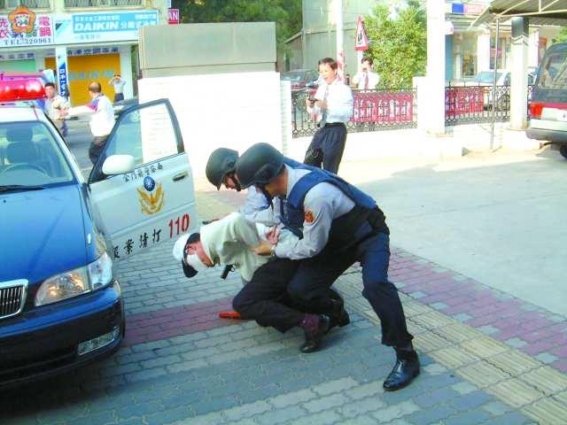 金城警察所為維護金城地區各金融機構安全,特依警察局頒發之「提升國家治安維護行動方案」執行計畫,會同台灣土地銀行金門分行辦理金融機構防搶演練,期藉由加強演練提昇應變能力,以維護金融機構處所之安全。 該項防搶演練昨日上午八時三十分許舉行,演練中模擬忽有三名歹徒持槍進入金城鎮民生路卅四號「台灣土地銀行金門分行」結夥搶劫,歹徒三人分別持槍挾持行員,並以手槍控制櫃檯內外其他人員後,跳入櫃檯內欲搶劫現金。 在此時,行員機警按下與警察所連線之警鈴報警,金城警察所值班接獲報案後,火速派員趕赴現場,線上巡邏員警曾金塗、張楷森及備勤警員許燕鈞、章朝欽等在接獲通報二分鐘內即分別抵達現場,此時歹徒見警網抵達,便放棄挾持人質,並提著已裝好鈔票之手提袋跳上櫃台相繼欲逃離現場。員警以平日訓練有術,以迅雷不及掩耳之速度,順利將三名歹徒逮捕歸案。整體演練過程逼真,來往民眾誤以為真,經演練人員告知後,始恍然大悟。 金城警察所所長林興財指出,鑑於近來台灣地區搶案頻傳,為維護金城地區治安,該所將動員警力及轄區各村里社區巡守隊之民力,以發揮整體團隊功能為基礎,用具體行動展現力量,強力執行偵破刑案、緝捕要犯、肅清竊盜、槍毒、全面預防犯罪及提升服務品質等立竿見影措施,確保安寧生活環境,讓民眾能立即感受政府維護治安的決心,提供民眾一個快樂安全的生活空間。