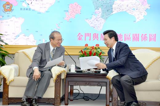 新任福建金門地方法院院長林春長昨日上午拜會金門縣長陳福海,對陳縣長建議地方法院能配合金門縣政府新行政園區及司法園區之規劃興建,一併遷移至位於原乳南二營區之基地,感謝縣長給予支持,相信司法園區建構未來一定會蓋得很好。 由臺灣新北地方法院法官兼庭長陞任福建金門地方法院院長的林春長,昨日上午九時在書記官長李成在陪同,禮貌性拜會了縣長陳福海,在場作陪的有縣府民政處長王中聖。 縣府行政處指出,金門地方法院為提升服務品質,擬申請撥用「乳南二營區」后盤山段及石牌段等計11筆土地合計約6.88公頃,而因應「乳南二營區」地形地貌特殊性及戰地文化資產保護原則,縣府特委託顧問公司將雙乳山周邊規劃成為綠地休憩公園,並建議司法園區實需設置於雙乳山東側3公頃範圍,以供法院及檢察機關合署辦公使用。 縣長陳福海表示,金門為兩岸未來重要關鍵點,也是九二共識最佳實驗場,以台灣民主、法治及獨立、公正的司法運作優於大陸,司法園區的建構可供陸客參觀,是期和院檢、縣府雙方一起努力,趕快來做。 而縣長陳福海前不久才赴法務部拜會部長羅瑩雪,說明縣府規劃的乳南二營區行政園區,將納入司法園區,並提議將位於金湖鎮金門高職旁的金門監獄遷移至水頭的福建省調查處後面。法務部長羅瑩雪對金門縣政府將負責代拆代建遷移金門監獄,欣然同意,樂觀其成。 金門地方法院新任院長林春長,民國51年次,私立輔仁大學法律學系碩士,82年特種考試司法人員考試乙等考試及格,司法官訓練所第33期結業,歷任臺灣板橋地方法院法官、臺灣新北地方法院(原板橋地院前身)法官兼庭長,在司法界20年間,辦案成績優良,學經歷豐富。