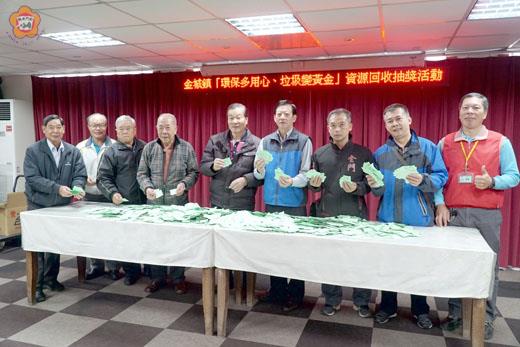 金城鎮公所舉辦一○四年度的「環保多用心、垃圾變黃金」第四次資源回收摸彩活動,抽獎儀式於昨(六)日上午,在金城鎮公所主任秘書黃耿銘、金城鎮民代表主席陳天成以及各里里長的見證之下,於近兩萬張摸彩券中,共同抽出三百多個大小獎項。領獎日期自今(七)日起至元月十五日止,請獲獎民眾注意兌獎期限。 金城鎮公所第四次資源回收摸彩活動的兌獎期限,自元月七日起至元月十五日為止,逾期未領者視同棄權。而領獎地點在金城鎮公所環保課領取(金城鎮民生路二號,電話:325057轉8)。得獎人於兌獎期間憑摸彩券正本及身分證正本、印章至本所領取(特獎至八獎獎項須備齊證件方可兌領,普獎可免備身分證,憑摸彩券正本即可兌領)。 另憑該期未中獎摸彩券正本二十張可兌領一份環保肥皂。偽造摸彩券經本所查證屬實者,取消獲獎資格並移送司法機關偵辦。得獎獎品不得要求轉換現金或其他商品。獎品依所得稅法相關規定辦理所得扣繳。公所方面保留更換等值獎品及變更活動內容或終止活動的權利。 金城鎮公所第四次資源回收摸彩活動,共計三百九十三份彩品,中獎號碼如下: 特獎,冰箱共一台:419688。 頭獎,洗衣機共一台:403300。 二獎,液晶電視共一台:411688。 三獎,微波爐共兩台:411914、419760。 四獎,除濕機共三台:402156、411249、419747。 五獎,電鍋共五台:404295、406939、409700、411915、419730。 六獎,電茶壺共五台:406961、407696、409239、418102、419893。 七獎,五百元禮券共五十份:400203、403874、405695、410759、414766、400402、403899、405933、410892、414908、401485、404135、406135、410964、415061、401516、404238、406732、411459、415331、401931、404374、407031、411564、416900、402084、404650、407116、411570、417669、402147、404710、407332、411576、418276、403038、405446、408437、411622、418568、403116、405447、408540、412052、418623、403725、405487、410174、412383、419767。 八獎,記憶卡共廿五台:400217、405420、410768、412416、417276、400868、405615、410935、415032、418438、401595、406119、411326、415060、418667、402547、406301、411629、415298、418823、405322、408352、411721、417009、419731。 普獎,環保宣導品共三百份,彩券中末三碼者,每券一份,中獎號碼為:050、199、654、932、070、273、708、934、088、492、859、170、643、919、950。(以上號碼以主辦單位公布為準)