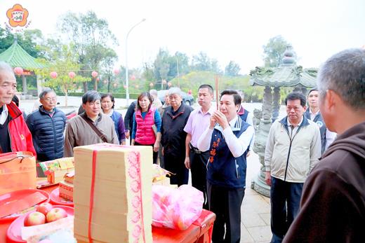 圖文/陳冠霖 金沙鎮陽翟會山寺昨舉行醮慶活動,縣長陳福海一大早便到場上香參拜,祝禱祈求國泰民安、風調雨順,同時獻上爐敬金表達敬意;金沙鎮長陳其德也到場陪同。同時,陳縣長也走訪附近陳禎「恩榮」坊,傾聽當地鄉親對古蹟文物保存的意見,以作為施政的重要參考。 金門島供奉普庵祖師的廟宇有前埔的「清秀山宮」、后沙的「鎮南宮」和陽翟的「會山寺」,會山寺是金門地區供奉普庵祖師的傳統老廟之一,其供奉的普庵祖師兩尊,小尊佛像自前埔請來,大尊普庵祖師則由小尊普庵祖師乩示預言,信眾在碧山海邊,將海漂樟木迎回,雕成普庵祖師奉祀。共有一大一小兩尊。