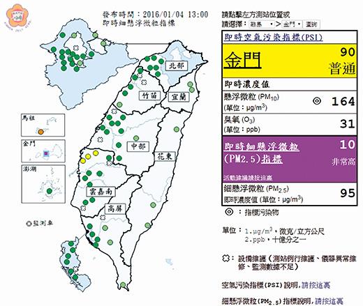 空氣不好,出門記得戴口罩!根據氣象局網站資料,受到境外汙染物的影響,金門地區自前(3)日傍晚起至昨(4)日一整天,細懸浮微粒(PM2.5)濃度都相當高,PM2.5指數幾乎都在7(高)以上,甚至到達最高10(非常高)等級,全台灣幾乎都是「低」,就只有外島金門和馬祖PM2.5偏高。 根據環保署針對PM2.5指數10的建議:任何人如果有不適,如眼痛,咳嗽或喉嚨痛等,應減少體力消耗,特別是減少戶外活動。而有心臟、呼吸道及心血管的成人與孩童,以及老年人應避免體力消耗,特別是避免戶外活動;具有氣喘的人可能需增加使用吸入劑的頻率。環保署提醒,當地民眾出門要配戴口罩,尤其敏感性族群民眾要特別注意,要減少戶外劇烈活動的機會,如果身體有不適的狀況,也要特別注意。 另外,中研院與陽明、成大合作,在全國5縣市取樣2萬多名30歲以上成人個案,平均追蹤16.9年後,發現有464人罹患肝癌,且比對個案居住地與環保署PM2.5監測資料後,發現以台灣本島為例,PM2.5每立方公尺增加13.1微克,罹患肝癌的風險就提高22%。研究也發現,長期暴露PM2.5會使肝臟發炎,並證實無慢性病毒性肝炎、不菸不酒者,吸髒空氣也會增加罹肝癌風險。此研究上(12)月底刊登於國際重量級期刊「美國國家癌症研究院期刊」,領先全球證實長期暴露PM2.5會增加肝癌風險。 金門地區自前(3)日傍晚起至昨(4)日一整天,細懸浮微粒(PM2.5)濃度都相當高,PM2.5指數幾乎都在7(高)以上,甚至到達最高10(非常高)等級。