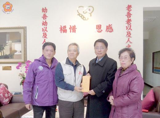 太武山海印寺由楊清國等代表,日昨前往大同之家關懷長、幼,並致贈一萬兩千元慰問金,寒冬送暖讓長輩和院童感受社會的關愛。 太武山海印寺,懷著視長猶親、視童猶子精神,於二○一五年十二月三十日下午二時許,楊清國等工作團隊代表,前往金門縣大同之家慰問,受到主任楊志斌、組長許乃生等熱烈歡迎。 楊清國等一行人致贈一萬兩千元加菜金給大同之家。主任楊志斌表示,海印寺長年以來對大同之家的關懷慰問從未間斷,非常感謝一行人寒冬送暖,百忙中抽空到訪贈送加菜金,代表長者和院童感謝海印寺的關心。場面相當溫馨感人。