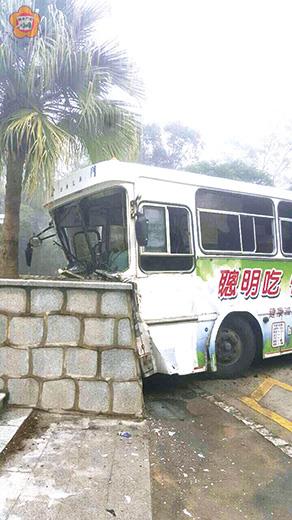 碰!公車撞圓環!一輛公車昨(4)日清晨行經太武山圓環時,疑似因為駕駛精神不濟加上視線不良,公車迎頭撞上圓環,駕駛受傷、送醫急救,無生命危險;所幸當時剛發車,車上沒有其他乘客。 一輛公車昨日清晨約05:40左右,從山外車站發車要開往金城,沿著太湖路一段行駛至太武山圓環時,疑似因為駕駛精神不濟,加上當時天還沒完全亮,以及有些許霧氣,導致這輛公車迎頭撞上太武山圓環,車頭凹陷、前方擋風玻璃也破碎,開車的陳姓駕駛(男,40歲)被困在駕駛座上。 事發之後沒多久,警消接獲報案趕抵現場,將受困的陳姓駕駛救出,緊急送醫,發現有腦震盪現象,鼻梁、臏骨和右腳等處有傷,但沒有生命危險;所幸當時清晨剛發車,車上還沒有任何乘客,因此沒有其他人員傷亡。警方也對開車的陳姓駕駛進行酒測,酒測值為○,因此推測應該是因為精神不濟加上視線不良才會肇事。 縣長陳福海得知意外後,非常關心駕駛情況,詢問有無生命危險,並親自到金門醫院探望駕駛,同時到保養廠,查看肇事公車損毀情況、慰問員工辛勞;陳縣長也要求車船處重視駕駛工作環境和情緒管理,維護乘客和公車安全。 據目擊者指出,該公車行經至圓環,原本應該轉彎,但案發現場,公車卻是「筆直撞上」圓環,「一點轉彎的跡象都沒有」,實在詭異。據了解,該公車車齡12年,或許不會再行維修,就此報廢。