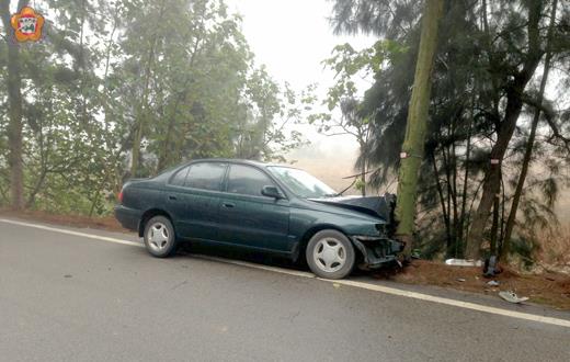 濃霧開車小心!金寧鄉湖下慈湖路昨日早上發生一起車禍,李姓男子駕駛的自小客車於行經慈湖路往慈湖三角堡方向時,疑因濃霧視線不良而衝向對向撞擊路樹,經送衛生福利部金門醫院搶救,仍宣告不治,車禍發生原因,警方進一步調查中。 金城分局警備隊車禍處理小組昨日早上七時零九分接獲勤指中心通報,在湖下慈湖路通往慈湖三角堡道路有車禍發生,警方趕抵現場時,發現一輛自小客車撞擊對向路樹卡住,車頭嚴重凹陷毀損、車前玻璃破裂,駕駛座前安全氣囊彈出、副駕駛座靠椅向後傾斜,後側座椅上有一位男子,警方立即通報消防局派員前抵救護。 金寧消防分隊消防人員趕抵現場進行急救檢查時,發現這位李姓民眾已無心跳,鼻孔有血,手上握著手機,經施以CPR救護並緊急送往衛生福利部金門醫院搶救,仍然回天乏術,家屬悲痛逾恆。 警方初步調查,家住古寧頭北山的李姓男子(六十三歲),每天早上會從家裡到金城東門菜市場賣菜,不排除是李姓鄉親昨日早晨準備經由慈湖路經慈湖三角堡方向回家,疑因晨間濃霧視線不好,途中車子衝向對向道路撞擊路樹,而導致死亡,警方也進一步調查車禍發生的原因。 金城分局分局長吳山連指出,地區近日來早晚有霧,開車視線不佳,提醒駕駛朋友務必要減速慢行,注意行車安全,以免發生車禍憾事。