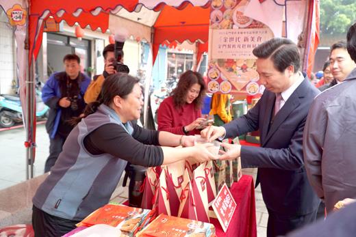 金門縣政府建設處於昨(四)日上午舉辦一場「金世代‧新美食」金門餐飲及糕餅展售會,活動現場也邀請數十家以上的地區及台灣餐飲糕餅業者現場設攤,透過與過往遊客、地區鄉親的互動,將金門特色的飲食、點心糕餅的文化,讓更多觀光客了解,以藉此讓金門美食更發揚光大,讓世人認識金門美食的好味道。 金門美食知多少?土生土長的金門鄉親對於在地的傳統糕點認識多少?金門縣政府建設處協助輔導以及推廣地區美食,於昨日上午十時三十分起至下午三時三十分止,假金城鎮的總兵署前廣場,舉辦「金世代‧新美食」金門餐飲及糕餅展售會活動。 活動於十時三十分起開幕,金門縣長陳福海、金門縣政府秘書長黃景舜、縣政府建設處處長許志忠、金門縣文化局長呂坤和、金城鎮公所主任秘書黃耿銘、金城鎮民代表會主席陳天成、金沙鎮長陳其德、金寧鄉長陳成勇等地區首長、官員到場共襄盛舉,一起來為地方美食推銷。 昨日為新曆年第四天,也是新的一年的首個上班日,陳福海表示,昨日的活動中,很多單位如衛生局、文化局以及縣府團隊都出動了,重點就是要建構金門成為美麗島嶼,並吸引更多人來造訪金門。他認為,金門其實有很多適合說故事的觀光景點,最重要的是,不僅要將更好的說故事景點建構出來,此外還有更多的美食、餐飲,也是有很多屬於金門的故事性存在,值得去陳述。 陳福海說,昨日的活動,目的就是輔導金門在地特色餐飲,以此來吸引更多旅客駐足,及留戀金門美食,地區許多特色糕餅,例如貢糖、一口酥、牛肉乾、豬肉乾等,都是觀光客喜愛的產品,他認為這樣還是不夠,應該還能找到更多的創意,用更多在地食材,去建構更好的美味。 台灣知名的美食家梁幼祥,多年來在上海、台北、北京等地,舉辦過多場兩岸三地美食文化季的活動,陳福海昨日特別預告,今年縣府將特別邀請他來金門,時間點大約是在五月份或六月份左右,將大陸、台灣最好的美食專家邀請來金門,來幫金門的在地食材,去建構更有創意的料理,金門是幸福島嶼,他保證其未來性一定是可以期待的。 日前前往北京就是要為金門發展尋找政策的突破,陳福海認為,金門要發展,一定要有人潮,金廈一水之隔,廈門每年約三至五千萬的旅遊人口,在兩岸的觀光政策上,要讓廈門旅遊人口延伸至金門,使造訪廈門的遊客會到金門來,為此與廈門差異性的產品就一定要建構出來,只要市場如沒問題,人潮也有的話,具有地方特色的特產及餐飲一定要有。縣府有義務協助,將真正金門最好的產品,透過專業技術,與業者一起打拚,將最好的產品推出,讓更多觀光客愛上金門。 建設處處長許志忠表示,為了提升糕餅產業,縣府很重視糕餅餐飲業者的服務品質,並且也進行了安全衛生方面的輔導,此次有店家獲得縣府認證,縣府方面也會提供這些優良的糕餅業者QR Code,以便日後在網路上協助業者進行宣傳,日後也會將這些業者建置到相關APP當中,讓遊客透過手機瞭解這些業者的美食。 昨天的「金世代‧新美食」金門餐飲及糕餅展售會活動,現場共推出了有貢糖、牛奶棒、蛋捲、芝麻荖、花生荖、一口酥、卡車餅、高粱蛋糕、Q餅、高粱燒餅、芋頭片、花生醬、果醬、特色巧克力、可汗筵、無糖創意甜點,手工餅乾、餡餅、豬腳禮盒等,共招募了多家台金業者現場設攤,分別有喬安牧場,聖祖、湶民水果餐、三言兩語、好口味餐廳、高坑牛肉、淳新蛋捲、長合餅店、子工坊、陳金福貢糖、一來順貢糖、東門餐廳、三層樓、無糖本舖、道爾吉手作麵包等多家業者參加,除了提供創意手工點心、創新的養生甜點、金門在地傳統糕餅以及美食的販售之外,現場還有一元特賣以及摸彩活動來炒熱人氣,透過此活動,喚起在地人對老味道的記憶,並給觀光客不一樣的美食交流。 此外,主辦單位也透過雜誌及電視媒體的報導、網路行銷、文宣品宣傳,及心發現 珍饗金門FB粉絲團(https://www.facebook.com/foodinkinmen/)上進行票選活動,讓更多人深入認識金門傳統美食與特色糕點,糕餅票選更是吸引五百多人轉貼分享,透過網路媒體的傳播,讓更多人知道並且看見金門的特色美味,縣府也將賡續開發APP網路傳播媒體,並廣泛的利用各種傳播媒體、臉書和大家進行經驗的傳播與分享,金門本地的美食業者。票選活動也選出前十名傳統糕餅,第一名貢糖、第二名閩式燒餅、第三名花生荖、第四名一口酥、第五名卡車餅、第六名紅龜粿、第七名麻荖、第八名寸棗糖、第九名滿煎糕、第十名芋泥餅。