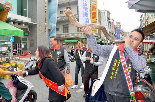 軍公教聯盟黨競選總顧問蘇進強、黨主席李延禧、不分區立委候選人張賜、陸炳成及金門立委候選人高丹樺、平地原住民立委候選人達佶祐‧卡造等,昨前進立委選情激烈的金門縣展開造勢活動,除了批藍打綠,幾位候選人也誓言擔任軍公教的代言人,在金城市場掃街拜票時,達佶祐‧卡造更一路吹著勝利號角,展現進軍立法院獨樹一格的氣勢。 高丹樺表示,金門從戰地走向和平,扮演著重要且特殊的角色,她要協助金門成為特別行政區和兩岸的文化、經貿交流平台;她也打算用文化、宗教與經濟的力量,把金門帶向國際。另外,她說她是代表著島嶼的女性站出來,也盼能改善醫療與教育,減輕家庭中女性的負擔。 李延禧說明,為終結藍綠惡鬥,守護台灣民主價值,該黨為捍衛軍警公教尊嚴與權益而戰,也希望金門的軍公教要覺醒奮進。他也說,該黨相當重視金門,所以一行人也會在金門參加今日登場的立委選舉號次抽籤,蘇進強則強調,軍公教聯盟黨支持改革,且以照顧弱勢為原則,而政治不只是惡鬥也非藍綠專利,金門有多數具軍公教身分的選民,污衊軍公教等同污衊金門人,盼大家支持金門女兒高丹樺在地深耕厚植,讓她用溫柔的革命,翻轉金門。 隨後一行人也轉往金城菜市場掃街拜票,不到10人的拜票隊伍,儘管不起眼,但伴同達佶祐‧卡造一路吹響的羚羊角,倒也展現軍公教聯盟揮軍立法院的如虹氣勢;特別是達佶祐‧卡造沿途賣力的「演出」,不論音聲與造型均頗為吸睛,還吸引不少民眾及遊客競相拍照合影。