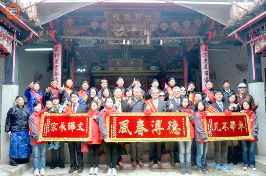 昨日「冬至」祭祖慎終追遠,國立高雄師範大學校長吳連賞一家人參與宗族祭拜祖先與「吃頭」聯繫宗親情感的地方習俗,吳連賞也和其子吳立心、侄子吳彥緯,一同晉獻「德溥春風」、「文曄承宗」和「卓犖不凡」三塊大紅匾額,完成光宗耀祖儀式。父子、叔侄同時晉獻【博士】匾額,傳為地方上的佳話。 吳氏家族翻修的古厝,吳連賞兄弟也利用古厝廂房的空間陳展上庫史話(地名的由來、聚落的形成、鹽場文化的遺跡)以及人文風情、自然生態,並介紹吳氏家族成長淬煉故事、以及烈嶼鄉人物點將錄,期望將金門人的精神、地方的文化永續傳承。古厝是開放的空間,吳連賞兄弟歡迎鄉親、遊客參觀上庫秀才厝,也到位於吳氏宗祠、吳氏家廟、吳秀才厝後方的吳家古厝參觀。 金門各宗族大多有家廟。在家廟中,只敘倫常,不計賢愚,但有功名的子弟才有獲得立匾或晉匾的機會。對獲得晉匾的子弟而言,這是一種殊榮,對宗族整體而言,則可光耀門庭,是可以告慰祖先的大喜事。在科舉時代,有資格在家廟中立匾者,不外乎進士、舉人之類;民國以來,獲博士學位或晉升將級軍官的子弟,也有資格晉匾。吳連賞在25年前就獲得中國文化大學地理學博士,並於今年7月31日接任高師大校長,成為小金門(烈嶼鄉)第一位國立大學校長;他的兒子吳立心,也在今年得到澳洲墨爾本大學生命科學研究所博士、侄子吳彥緯獲得台灣大學資訊工程研究所博士,一位大學校長,兩位新科博士,一門三喜,吳家利用冬至日返鄉祭祖並晉匾,吳連賞和他大哥建宏(媽諒)、二哥媽清、三哥義勝、五弟啟瑞,帶著家人一起返鄉參與祭祖、晉匾以及感恩餐會,感受鄉情。 吳氏族人與有榮焉,前日已經熱鬧舉行迎匾繞境活動,昨日下午二時在吳氏宗祠隆重舉行謁祖、獻匾典禮,在多位族老、宗長的陪祭下,吳連賞父子、叔姪和家人,遵循古禮上香祭拜歷代祖先,虔誠感懷祖德福蔭子孫,吳氏家族開枝散葉、枝繁葉茂。並獻上「德溥春風」、「文曄承宗」和「卓犖不凡」三塊大紅匾額,謁祖、晉匾的各項莊嚴慎重的儀式,讓在場觀禮的年輕一輩族人留下深刻的印象。吳家還有3位後輩在攻讀博士中,宗親頻頻向吳連賞一家人表達道賀,稱羨是書香世家,是上庫之光。 晚間的【吃頭】聯誼餐會,吳連賞一家人和宗親話家常,暢談地方事。吳連賞表示,只要地方有需要他們一家人協助的地方,很樂意幫忙。他代表吳氏家族五十一位成員向宗親致上最高謝意。