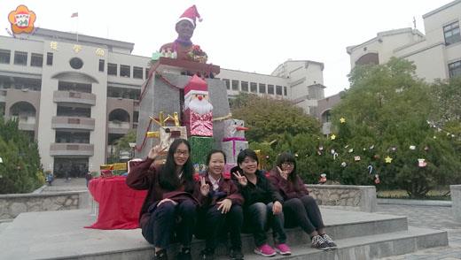 一年一度耶誕佳節將近,許多城市都會應景搭起耶誕樹來點綴街頭。金城國中校園內豎立的蔣公銅像也變身為耶誕老公公,與平時英姿挺拔的模樣判若兩人,呈現出一種另類的耶誕風情,如果最近有行經城中校園,不妨一起來感受這幅特別的耶誕風情畫。 金城國中繼教務處「借書送耶誕喜糖活動」,輔導處在學務處前布置耶誕樹,點亮耶誕氣氛,學務處也在體育館前舉辦全校慶祝耶誕節活動。總務處特別在校園中庭,以「蔣公銅像」為中心精心打造耶誕節節慶場域,使校園處處洋溢耶誕氛圍、讓全校師生感受耶誕節的歡樂氣息。 校長許維民表示,耶誕節對傳統的基督徒來說,是在慶祝耶穌的誕生。他們會在耶誕節做禮拜,以紀念耶穌和發揚基督的精神。不過,現在耶誕節已成世界性的節日,人們已把它看成一種節慶活動,是一個大家分享彼此對於家人、朋友甚至於他人的愛與關懷的日子。今年耶誕節前夕各處室紛紛協同舉辦各類慶祝活動,以「平安喜樂心、溫馨耶誕情」為主題,將不同的主題融入耶誕節的課程,師生互動,創造另一種新的學校課程。 在總務處王振漢主任率領同仁暨藝文領域老師洪琪玫的指導下,學生紛紛製作各種有關耶誕吊飾、松果、籐球、祈福卡、襪子卡片、卡哇伊的耶誕老公、麋鹿及大包小包的禮品,五彩繽紛、琳瑯滿目的耶誕節禮品,妝點以蔣公銅像為主的場域,營造耶誕氣氛。尤其用學生吃完的零食包裝袋,做成一串串三角形的環保吊飾頗為搶眼,而紙摺成一座可愛的耶誕老公公,以及洪琪玫老師親自縫製的大耶誕帽,將「蔣公」化身為耶誕節的老公公,成為校園課程中最大的創意與焦點。 許維民校長指出,這是城中有史以來師生慶祝耶誕節最具創意與巧思,也改變了校園的風貌。在耶誕節來臨前夕,到處都可以看到耶誕的裝扮,也讓這個陰晴不定的冬天充滿了暖意,讓校園洋溢耶誕的氛圍,孩子們也將會在快樂、歡欣的氛圍中,學習耶誕節的來源、慶典,親身感受西方文化的獨特。