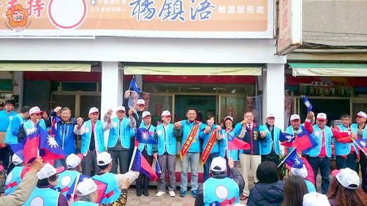 中國國民黨提名立委候選人楊鎮浯,21日上午十時許假金沙鎮國中路11號成立金沙鎮服務處,楊鎮浯以競選主軸「從家出發」懇託鄉親支持,前立委黃武仁、前議長王水彰、立法委員楊應雄上台力薦楊鎮浯,並呼籲鄉親支持捍衛中華民國,確保兩岸和平穩定發展的國民黨及總統候選人朱立倫,吸引大批金沙鄉親到場力挺。 楊鎮浯在菜市場拜票時聽到婆婆媽媽的心聲,說「國民黨倒國家就倒」、「穩定就好」、「台灣亂顧不到、金門要顧好」,他表示,國民黨帶領中華民國走過100多年歷史,不走偏差,目前社會氛圍充滿是非不分,穩定已成奢求。國民黨走中道正義,表現雖不盡令人滿意,但正派,值得信賴,與民進黨比較,國民黨馬英九政府補助金門醫院12億、大學升格、金門大橋興建、大陸椄水等,對金門最支持,只有國民黨才是負責任的政黨,把金門人當一回事疼惜,希望鄉親繼續支持國民黨。 楊鎮浯金沙鎮服務處成立大會上,賓客雲集,金門縣黃氏宗親會理事長黃文遠代表授戰旗,金門縣紅十字會會長王水彰贈好彩頭、楊氏長老楊仲叠贈旺旺來、李氏大老李康詩贈大吉大利、金門縣王氏宗親會理事長王添泉贈戰馬、立法委員楊應雄贈包粽、縣議員蔡春生、李應文贈包粽,國民黨金門縣黨部主委林芳旋、朱立倫楊鎮浯金門競選總部總幹事石兆瑉、金沙鎮前鎮長陳昆第、金門縣台灣原住民協會理事長章朝枝、高雄縣金門同鄉會理事長楊維居、金沙鎮官嶼里里長楊恭勤、浦山里里長周家才、西園里里長黃木林、光前里里長翁麗治、前考試院專門委員楊誠賢、張氏大老張海傳等地方人士,均到場給予祝福。