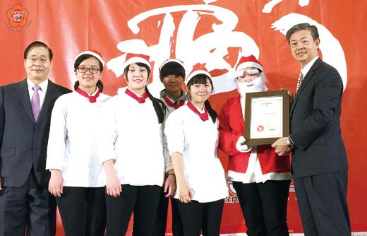 財團法人金門酒廠胡璉文化藝術基金會「手作粿冬至」活動昨登場,吸引近兩百位民眾齊聚金城國中體育館,體驗紅龜粿、湯圓製作。其中,「福粿巧手王」比賽,由高職餐管二年級五位學子組「High School Lady」隊參賽,以「歡樂饗宴在金酒」作品拔得頭籌,並抱回六千元獎金,也有三位幸運兒獲遠東航空北金來回機票。副縣長林德恭、金酒公司董事長陳永明致詞時表示,活動深具意義,充滿濃厚傳統冬至習俗和氣氛,明年將擴大舉辦,讓傳統技藝繼續延續。 由財團法人金門酒廠胡璉文化藝術基金會主辦的「手作粿冬至」活動,共分創意紅龜粿「福粿巧手王」團體比賽(參與比賽投票者有機會抽中北金機票);「體驗手作紅龜粿及搓湯圓」個人組。活動昨日上午九時起登場,共吸引兩百位民眾齊聚一堂參與。在現場佈置伴襯下,現場紅通通一片相當富有團圓喜慶氣息。 其中,創意紅龜粿「福粿巧手王」共計有六組「幸福的滋味」、「鯛魚咬海豚」、「High School Lady」、「霹靂女孩」、「勝利龜來」等由金門高職學生所組成。其中,由餐管科高二五位學生陳劭農、王慧文、葉品嶸、陳羽蕎、李佳珍所組成的「High School Lady」,運用菠菜、南瓜、洛神花等天然食材作為色素,顛覆傳統紅龜粿造型,搭配耶誕氣氛創造以聖誕樹、雪人等圖騰,贏造繽紛節慶色彩視覺、及健康概念的味覺享受,獲得最高票,也抱走六千元獎金。第二名為「霹靂女孩」的「兵紛粿」;第三名為「幸福的滋味」的「金壽龜·呷平安」。每道創意料理都讓在場的民眾驚艷跟讚許,也感受到學生們的無限創意。 副縣長(胡璉基金會董事長)林德恭、金酒公司董事長陳永明,也到場頒獎嘉勉績優隊伍,並分別從第一名的票箱中抽出薛惠芳、薛秀芳、侯秀月等三位幸運兒,獲得由遠東航空贊助的金門台北來回機票。 而接著登場的紅龜粿及搓湯圓體驗,吸引許多民眾報名參加,有人來傳承好手藝,更有人來學習,不少民眾全家大小圍著圓桌,大手帶小手動手做出人生第一個紅龜粿。古佳峻博士也現場指導紅龜粿的製作,並請與會高手分享製作紅龜粿的要領,及分別介紹了台灣、金門紅龜粿的差異性,民眾動手體驗的同時伴隨即興有獎徵答的遊戲,讓民眾愛不釋手,不只手作、更要動腦,好看、好吃、又好玩。 林德恭表示,胡璉基金會秉持著取之於社會,用之於社會的精神,因此投注許多的資源,是場活動除了傳承了傳統冬至民俗,非常樂見熱情民眾到場參與,盼能藉以薪傳金門傳統技藝和冬至傳統風俗。金酒公司董事長陳永明也表示,活動深具意義,明年計劃擴大辦理,讓更多人能參與這樣的活動,讓傳統技藝繼續承續下去。