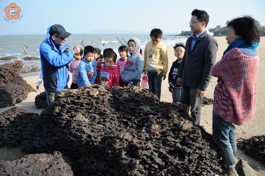 行動環境教育、述美北山淨灘,為讓述美國小學子們能為家園與海岸環境付出一分心力,做一個瞭解家鄉、重視環保的快樂學童,述美國小日昨前進金門北山海岸進行淨灘與地質教學活動,該校三年級學生熱情參與淨灘,期望為地方的環保工作盡一份力量,並聆聽浯江守護聯盟發起人洪篤欽解說地質環境與當地海洋景觀,活動深具鄉土文化與教育意義。 這項別開生面的教學活動是在日昨下午一時三十分於古寧頭戰史館旁的北山海岸舉行,述美國小十三位三年級的小朋友們熱情參與,在校長劉界宏、導師王維剛等人的帶領下前進北山海岸,大夥沿著海岸沙灘區撿拾垃圾雜物,賣力清除影響家園漂亮海岸的髒亂物。 小朋友們以實際行動關懷、愛護環境投入淨灘行列,浯江守護聯盟發起人洪篤欽也應邀前往現場解說貓公石質環境以及私梟、海飄垃圾、海平面上升對於當地海岸環境的破壞與影響,期能為金門灑下環境保育的種子,讓永續經營的生態概念落實到下一代。 述美國小校長劉界宏表示,北山海岸風景相當美麗,且富含歷史文化與各種海岸地景,附近的古寧頭戰史館更是許多遊客到訪金門的必遊景點,維護海岸環境清潔是件任重而道遠的工作,希望這次的環境教育行動能將金門的好山、好水、好風景介紹給小朋友們認識,愛護家園的共識,同時透過淨灘活動進行海洋自然環境教育,為海洋環境保護盡一分責任和心力也留給子孫們青山綠水的環境。