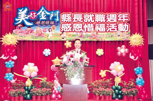 感恩惜福!金門縣政府昨(20)日於昇恆昌金湖大飯店舉辦「縣長就職週年感恩惜福活動」,邀請縣內46位百歲人瑞共同參與。陳縣長強調「從感恩出發、從惜福開始」,並掛保證未來繼續以「正心正念」服務鄉親,讓金門仍然是個幸福的島嶼。 本(12)月25日就是縣長、縣議員、鄉鎮長、鄉鎮民代表及村里長的就職滿週年之日,金門縣政府昨日以感恩的心舉辦「就職週年感恩惜福活動」,適逢建縣100年,特別邀請縣內46位百歲人瑞以及其家人共同參加,作伙逗熱鬧。縣長陳福海、副縣長林德恭、縣府秘書長黃景舜、立委楊應雄、議長洪麗萍、副議長謝東龍、議會秘書長洪允典、縣議員石永城、洪鴻斌、周子傑、楊永立、蔡春生、蔡水游、張雲德、許華玉、李誠智、歐陽儀雄、陳滄江、金防部指揮官郝以知、各鄉鎮長、各鄉鎮民代表及縣府各局處主管均出席,場面非常熱鬧。 活動開始便由陳縣長和議長洪麗萍一一與這些金門縣最尊貴的百歲人瑞們以及其家族合影留念,並且致贈壽酒,有些老人家行動不便,陳縣長和議長洪麗萍也幫忙攙扶他們上下舞台。 陳縣長致詞時表示,金門是個健康長壽島,也是幸福島嶼,自己與每位百歲人瑞合照時,感到非常溫馨感人;陳縣長也說,過去一年,大家共同見證金門的成長與蛻變,因此,此次活動主題訂為「感恩惜福」,亦是「從感恩出發、從惜福開始」;陳縣長指出,100年來,金門改變了許多,從遍地黃沙變成綠意盎然,從戰地前線變成兩岸樞紐,從滿目瘡痍變成美麗家園,從殺戮戰場變成觀光聖地,從貧困僑鄉變成美好金門,而這些百歲人瑞尊長都是最佳的歷史見證。 陳縣長說,自己在金門耕耘26年,但這麼長的時間內,他覺得最虧欠的,就是自己的母親;陳縣長提到,自己每天出門前和回家時,都會向母親請安,他認為天下的父母都是最偉大的,因此勉勵在場所有人要以「感恩惜福」的心,感謝每一位阿公阿嬤、父母親和家人對我們的付出。 陳縣長同時也勉勵在場的每一位政治人物,對於金門這塊土地,能夠認真地做、用心地做,讓金門鄉親們的生活能夠更好;陳縣長也感念歷任縣長和在台灣打拚的立法委員們,過去為金門的努力,才能奠定現在的基礎;陳縣長強調「感恩惜福」,他說,金門這塊土地需要我們更認真、更努力地經營下去。陳縣長也重申自己的施政理念:「老有所終」,他說,金們早期艱苦,現在的老人家都是當時躲過戰火才倖存的,所以金門的老人家們都是自己的阿公阿嬤、爸爸媽媽,會盡全力照顧這些長者;「壯有所用」,陳縣長希望讓金門的年輕人留在金門,能夠有好的工作;「幼有所長」,陳縣長強調要加強縣內從小到大的教育政策,讓金門的學子教育得更有競爭力。陳縣長引用「禮運大同篇」之「鰥寡孤獨,均有所養」,他強調,金門每一個弱勢家庭,都是縣政府必須要承擔。 陳縣長表示,自己就任這一年是金門化身兩岸交流尖兵的關鍵性一年:今(104)年5月23、24日,夏張會在金門舉行,陳縣長與國台辦主任張志軍針對民生經濟、水電、環保等議題進行意見交流;7月20日,「金門自大陸引水」在金湖大飯店簽約,所有鄉親共同見證歷史性一刻;9月13日,陳縣長和廈門旅遊局洽談「5年500萬」旅客來金門計畫,預計將為金門觀光與經濟注入一股活水;11月7日馬習會,不僅為金門高粱酒行銷,陳縣長也於第一時間發表聲明,認為「無黨籍」的金門正是九二共識最佳的實踐場域與兩岸領導人最理想的會面場所;而這個月14至18日,陳縣長與議長洪麗萍和各鄉鎮長等公訪遼寧、北京,行銷金門物產,並拜訪國台辦張志軍主任,取得「穩定、發展、利民」的政策共識。 陳縣長強調,金門始終是「兩岸的金門」,未來的金門一定能擔綱更重要的角色,確保金門民生經濟的永續發展;就職一週年,他感謝鄉親給予機會,讓自己有機會為金門服務,他承諾縣府會再更認真、更努力打拚,也掛保證,繼續以「正心正念」服務鄉親,相信金門未來仍然是幸福的島嶼。 議長洪麗萍也說,陳縣長正心正念的施政理念,只要是有利於金門的政策,縣議會一定「全力支持」;未來縣議會將持續監督縣府,縣議員也秉持服務鄉親的熱誠;洪麗萍也向鄉親保證,金門縣是最幸福的島嶼、最適合長者居住的好環境。 (相關新聞刊二版)
