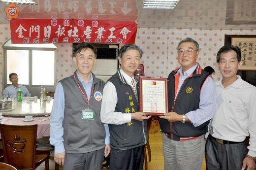 金門日報社產業工會昨(2)日上午召開第6屆第3次會員大會,並舉辦聯誼餐會,會中表揚於金門日報社服務滿50年的資深員工林勤芳,由副縣長林德恭親自頒發表揚令及紀念酒,感念其為報社奉獻半世紀。包括縣議員李應文、金湖鎮長蔡西湖、金門日報社長許一傑、金酒產業工會等貴賓均出席。 副縣長林德恭致詞時表示,報社資深員工林勤芳服務滿50年,「50年如一日」,相當不簡單,可謂「苦勞大於功勞,功勞勝於苦勞」。林副縣長說,金門日報對於每一位金門鄉親來說,都是非常重要,很多人每天一早起來,第一件事就是要看金門日報,已經成為日常生活習慣的一部分、精神糧食。林副縣長感謝報社員工的辛勞付出,讓鄉親能夠享受「知的權利」,他代表縣長陳福海致上最高敬意。 資深員工林勤芳於金門日報服務滿50年,適逢金門日報日前才剛慶祝50週年社慶,等於林勤芳幾乎是「看著金門日報長大」,金門日報創社多久,林勤芳就服務多久,堪稱資深中的資深,不過林勤芳對於自己資深的經歷十分謙虛低調,他認為報社的成功是大家共同努力而得來。林勤芳回憶起早年在報社的工作環境,當時地下鉛排廠離地面共有31階,每天上上下下,都得帶著衝勁。遇到雷陣雨的天氣或霧濃季節,外面是雨或霧,裡面則是小雨滴答。由於排水不良,坑道甚至積水,同仁們得一面用水桶盛水,接力將水桶遞出;一面得將新聞鉛排趕製出來。 金門日報產業工會第6屆第3次會員大會,也發表明(105)年工作計畫,包括辦理會員出入會籍之管理與登記;每3個月辦理召開理監事會議;每年辦理召開會員大會;會員及親屬如遇傷亡,均派員慰問並發放慰助金;配合縣府及總工會辦理勞工幹部教育訓練;派員參加勞工勞健保法令座談;舉辦郊遊活動,增進會員情感;利用會議加強政府政令宣導;透過理事會制定本會內規及辦法,建立會內制度;加強公文檔案管理工作;爭取會員福利,維護勞工權益及改善工作環境等。 另,會中也提若干提案討論,包括104、105年度工作報表與收支決算表;報社人員屆齡退休,應事先規劃補足人力;報社門口至後方停車場路段之路燈修復及增加;受訓等相關資訊應公告週知並張貼等案。