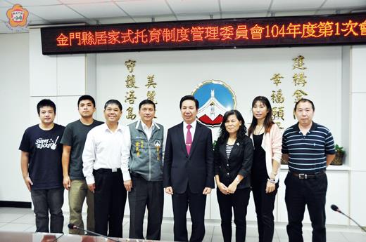 104年度金門縣居家式托育制度管理委員會昨日召開第三屆委員會第一次會議,縣長陳福海感謝委員參與和付出,強調建構優質友善環境,讓幼兒教育向下紮根,學校不放棄任何學生致有中輟生產生,就是要防止、避免像鄭捷事件發生的造成龐大社會責任。 會議昨日下午三時起,在縣政府第一會議室召開,由縣長陳福海主持,委員甯國平、陳天順、許碧華、吳淑鴛、蔡宗儒、洪添福、顏章斌,以及社會處副處長許美鳳、科長莊彩鴦等與會。 會中,社會處也就上次會議決議事項執行情形作報告。社會處指出,金門現有托育人員計207位,依資格區分,一般托育人員取得技術證照有二十五人、相關學歷二人、專業證書二十人;而親屬托育人員方面,取得技術證照有十五人、相關學歷七人、專業證書一百三十八人。至於現有受托幼兒數總計二百六十六人,其中,親屬托育二百零七人、一般托育五十九人。 與會也就社會處提案,有關訂定金門縣「居家式托育服務收退費項目及基準」,提出討論。多位委員也提出托育人員請假、托嬰中心人員體檢補助、鼓勵加入社區保母系統、證照考試…等建議或意見。
