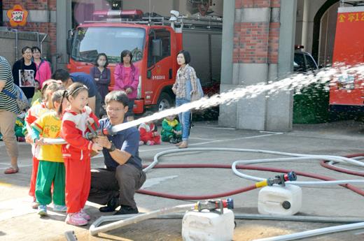 為豐富幼生的學習經驗,配合教學主題「幫助我的人」,金城幼兒園中班師生近二百人在園長許碧華帶領下,昨日上午9時利用校外教學活動機會,搭乘大型遊覽車前往金門縣消防局參觀消防員救災的配備設施,受到局本部熱忱歡迎。活動在消防局隊員親自講解及操作下,師生們不但個個感到新鮮有趣,且從中吸取各種消防常識及防火逃生要領,更進一步了解消防救災、救護等情形,讓孩子印象深刻。 金城幼兒園的小朋友在園方的安排下,配合教學單元課程「幫助我的人」,昨日前往金門縣消防局進行校外教學,活動內容安排有消防射水體驗、消防衣穿著體驗及「幫助我的人」影片宣導消防常識及防火觀念宣達。也參觀消防教育館,親身體驗學習「火災預防」、「災害搶救」、「緊急救護」等災害防範設施及預防觀念。並在消防隊員的親自講解及操作下,讓參訪學生藉以認識及學習操作消防安全設備。 小朋友第一次來到消防隊參觀,對隊上的裝備、設施充滿期待及好奇。李錫安首先為小朋友講解防火、避難逃生要領,介紹救護車上之每樣救護器材及用途,指導小朋友CPR、防火宣導、一氧化碳中毒宣導、防溺宣導、火場逃生、家中裝置住宅警報器宣導等,小朋友並穿上特製消防衣,體驗消防射水,滿足的表情全寫在臉上。 儘管學童對消防常識的吸收有限,但消防局全體同仁仍賣力演出,以「寓教於樂」的方式教導,希望透過小朋友的學習能影響每個家庭成員,重視消防更增進火災預防常識,期達全民防災之效果,也讓這群小小主人翁更能了解消防人員之工作性質。 教師們也利用活動教導小朋友警消叔叔執行救護及火災的辛苦,火警發生時,要打「一一九」,消防員會以最快的速度趕到現場來救災,讓民眾的生命財產減到最小程度。天真活潑的小朋友,直嚷著「警消叔叔好勇敢」,長大以後也要當消防員,令在場的警消有受崇拜的感受,也感到非常高興。 許碧華園長也表示,為豐富幼生的學習經驗,配合教學主題「幫助我的人」,中班全體師生金門縣消防局參觀,期望透過實際的參觀及體驗活動,自幼紮根正確防災意識,讓幼生學習並了解救災防護工作的內容及重要,進而增進幼生在面對緊急事件的判斷應變能力。