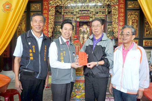 金城鎮西門境鳳翔社區宏德宮梁王爺千秋聖誕,廟方一連二天舉行醮慶酬神,縣長陳福海、議長洪麗萍昨日上午分別帶領府會團隊前往上香祈福,並敬獻爐敬金,祈求神威護佑地方平安,民眾安居樂業。 在每年的農曆十月十日適逢梁王爺聖誕,宏德宮管委會從初九起一連兩天舉行作醮謝神儀式。社區居民與附近民眾也會前往上香祈福,添緣敬賀,誠心恭祝梁王爺聖誕,並祈求神威護佑闔家平安,現場鑼鼓聲與鞭炮聲,熱鬧非常。 縣長陳福海昨日上午率同民政處處長王中聖、副處長蔡輝詩及縣府秘書何國楚、李文俊、許金象、陳國民等前往上香祝禱,受到宏德宮管理委員會主委蔡金珊及長老熱烈歡迎。 縣長陳福海帶領縣府團隊遵循古禮,虔誠向梁府王爺等神明上香獻鮮花、獻酒、獻牲儀、獻福果、獻香茗、行三鞠躬禮、獻金帛等,並敬獻爐敬金,祈求地方風調雨順、國泰民安,豐衣足食。陳縣長也親切地與長老寒暄問好、致送鄉親平安吊飾。 議長洪麗萍偕同議員唐麗輝、張雲德、總務主任楊誠國、秘書朱國華等議會同仁也前往依循古禮敬拜行獻禮,並獻上爐敬金為地方祈福,祈求神威護境佑民、百姓安居樂業。 宏德宮管委會主委與耆老也熱誠歡迎洪麗萍議長一行人的到訪,感謝對於社區廟慶活動的關注並親臨祝賀。 昨日包括金城鎮長石兆瑉、金城代表會主席陳天成,立委參選人吳成典、楊鎮浯、陳滄江議員等人率員前往上香虔誠敬拜,獻爐敬金祝賀。 「宏德古明神威靈赫澤千秋在、鳳翔新社里軒冕珠璣萬代興」!宏德宮主委蔡金珊指出,宏德宮之廟址在民國五十年代之前原係一道大排水溝,源自四埔的水經此匯流入海,在民國六十年代中期,鳳翔新莊創建並日益擴大,居民大增,原建有一座「福德宮」主奉福德正神,源於金門「有宮有祖厝才成鄉里」的傳統觀念,在諸姓雜居,不適建祖厝的情況下,廟宇之營建勢不可免,乃於民國八十三年擇地興建而成今貌。