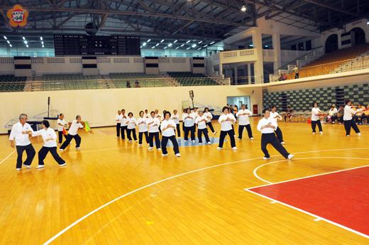 金門體育會太極拳運動委員會昨晚在縣立體育館辦理「104年太極拳拳架表演聯誼」,各社區太極拳友共聚一堂,以武會友,比劃太極、切磋武藝,展現平日的練習成果,分享練太極拳的經驗與心得。 這項太極拳拳架表演觀摩活動昨晚七時起展開,由金門太極拳委員會主主任委員陳水芳主持,縣府教育處長李文良、金門體育會理事長李金贊、該會前主委王世宗,以及全縣各社區太極拳友近兩百人齊聚一堂,展現平日練習成果,交流拳架、相互觀摩。 陳水芳主委指出,太極是我國傳統拳術,動作動靜得宜,有助於身心健康,但需要恆心、毅力每天重複練習,去體悟箇中的奧妙之處,從拳架上去揣摩練習,在內涵中去追求身心的放鬆,加上規律的生活作息,身心自然朝向健康目標,達到修練的目的。 他也提到,將太極內涵融入生活,達成處處有太極,事事有太極,從修練太極中深思反省體會,將使身體非常健康、身心非常愉快。 教育處長李文良也代表縣長陳福海向大家致意,他指出,地區太極拳委員會在各項表現也相當傑出,不論赴台灣或到大陸去交流比賽,成果都非常豐碩,而且會內的經營也非常成功。太極拳內外兼修,尤其看到各參加的會員大家精氣神十足,更證明太極拳功效非常好。 李金贊理事長表示,太極拳在金門是一個大家族,很多鄉親都很喜歡太極拳運動,尤其這幾年在陳水芳主委、楊國興總幹事以及社團幹部努力用心下,一年比一年進步,一年比一年壯大,尤其幾次受邀到大陸比賽,成績都非常亮麗,獲得拳界很高的評價。此次聯誼,大家以武會友,切磋拳術,提昇技術水準,並達到運動健身目的,也讓家庭更幸福美滿,社會更溫馨和諧。 昨晚太極拳架表演的內容包括有:金湖班的「綜合演練(拳、刀、劍、推手、扇)」、中正班的「32式、99太極棒(聯結)」、金沙班的「健身氣功」、縣體育場班的「五禽戲、64式第一段(連續)」、金湖班的「五禽之戲」、金沙班的「陳式太極拳」、陳根旺與張雲萬的「陳氏單刀、陳式扇」、下莊班的「太極功夫扇」、李月珍、楊國興的「陳式老架一路、陳式24套路」,還有全體會員一起演出的「37式太極拳、24式太極拳」。 楊國興指出,太極拳具有強身、氧氣、吐納伸展的功效,地區推展太極拳活動已有近18年的歷史,目前會員也有約400人,每日清晨皆可看見會員於校區或公園拳架活動,金門太極拳委員會每年春季、冬季都會舉辦拳架表演聯誼,近幾年來(每年九月)組隊參與廈門舉辦的國際武術賽,也都有優異表現,提高金門的亮度。