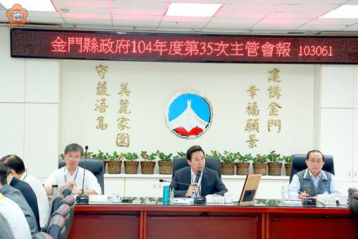 「大家都怕事,一定做不了事。」縣長陳福海昨在主管會報中表示,每次會議,我們都要用很長的時間作討論,其中,雖然大多是老調重彈,但會後,政策方向務必要彙整,認真做事的人,點點滴滴,他都看得到,原則上,他會抓政策,只要是做對的事,回到「正心正念」,他鼓勵大家勿怕事,也不要鄉愿,為了這塊土地,他會和大家一起來面對、一起來承擔。 另外,對於總預算的順利過關,他說,這是府會溝通起了相互尊重的自然結果,良性溝通是「眾妙之門」,違法的事,我們絕對不做,只要不違法,一定要給議會最大的尊重;不違法,也要請議會給我們全力支持,該說明,該爭取的,他也會透過制度的建構,要求同仁全力以赴。 至於有關各單位主官管的任事態度,他也鼓勵大家要用「縣長」的高度看問題,當然也可透過好的顧問公司來為我們規劃好的未來發展方向,對的人,他會珍惜善用,不對的人,他也會要求人事部門隨時掌握調整,務必要讓每個「位子」發揮它的功能價值。 會中,針對重大施政項目時效的掌握,陳福海說,除了要加強管考外,更應注重要工作事項的訊息傳播;希望觀光處要配合行政處建立傳達管道,避免坊間輿情誤導及不實傳播,當然,不只行政園區、尚義住宅區這些重大推案,必要時,相關機關間時效性公文的往返,均可指派專人送達、溝通,以加速公文流程,縣長室也會隨時給予方向的引導。 至於有關縣政顧問功能的發揮,他說,就快一年了,他幾乎每天都在思考這一年還有未來幾年自己要做什麼,他很樂意聽取縣政顧問的意見,也希望大家都能提供一些更專業的見解,只要施政透明化,上行下效,他不會逾越,也不會干預,立得正,他相信無事不可做,只希望大家都能拋掉因循苟且的心態,用更積極的態度任事,否則他要面對的是政治責任還有人民的感受,他實在不願見到四年後還是一場空。 另為避免中古車、廢棄車輛充斥道路及違停公有土地妨礙觀瞻,環保局除了將針對5年以上中古車進入金門採管制作為,也將在近期內研擬改善方案,以落實金門低碳島政策,預計在未來3個月內,環保局應可再清理廢棄車及廢機車各30輛。 而對於行政園區的規劃,陳福海表示,這要有百年造鎮的格局和思維,有關外界對周邊公共設施之強度有所顧慮,應請相關單位加強是項內容之對外說明,除此,對這塊土地的規劃,大家都會有一些想法,沒有對和錯,只要想做事,有企圖心,透過更恢宏的集思廣益,不一樣的思維,更前瞻的構想,一定能讓相關規劃更精進。 再者,針對違規使用地下水之農業、餐廳、飯店,他認為相關單位應有「即查即封」的執法魄力;清查前,宜先通知各業者知悉,並予適當的緩衝(預告)期,方能做到令到禁止。另為免再傳湖庫溺水憾事,他也特別請水廠在地區各湖庫規劃設置救生圈,並朝常態設置方向以為規劃,以期減少人員的意外傷亡。年度落後案件則應確實查明原因,若屬經常性的落後個案,且無法提出具體改善措施者,應追究承辦人及主管責任。 除此,有關縣長信箱匿名或陳情內容不完整案件,他也請承辦同仁要用「同理心」態度來處理問題;也請人事室安排一線服務同仁參加相應的訓練課程,另重大指標性工程民眾都極為關心進度,承辦單位除應掌控進度外,可應善用「金門日報」報導管道主動說明。 而囿於地區商圈景氣的低迷,在活絡的相關作為上,他也期許要善用商圈自己的組織力量,計畫、方案由他們主動構思,縣府配合來打造平台、環境,才能事半功倍。至於金東、金西養生及長照規劃,一定要在年底有個定論,以免民眾認為政府規劃總是遙遙無期。 尤可預期的,2016後,金門在兩岸事務上勢必扮演更關鍵的角色,因此,有關兩岸涉及陸事務,他認為不應只是拜訪來拜訪去,而要構思以遊說、論壇、研討會等方式,來促成更密集、更具決策性的兩岸協商與會談。 其中,據聞大陸酒廠急欲藉由「馬習會」與金酒合作操作行銷話題,在不涉及政治敏感的前提下,應可具體研商合作方式,藉此拓展金酒大陸通路及市場。另良金公司行銷溫體牛肉的作法頗值得借鑑及參考;可洽商登陸舉辦試吃品嚐會的可行性,建立金門質優物美的形象品牌。 此外,1-1等幾條定調興建或拓寬的計畫道路,他也建議應密集與地主展開協商及座談,必須要先知道民眾具體訴求,以及書面的允諾條件才好「對症下藥」、解決問題。 最後,陳福海說,「馬習會」後,益發凸顯金門地位的重要性及可能性,請行政處主導進行相應開放法規的研訂及說帖,俾便提供行政部門、立院各黨團、各總統候選人政策之參據。