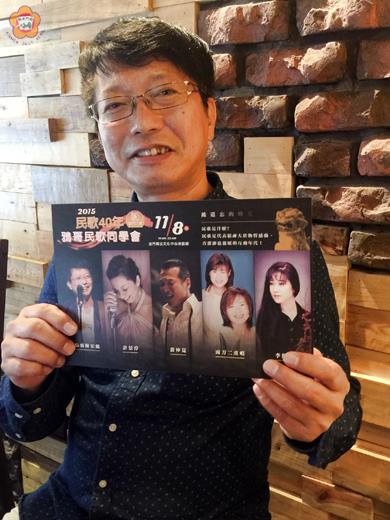「民歌40鴉哥民歌同學會金門三班演唱會」,今(八日)晚七時文化局演藝廳登場,民歌手小烏鴉陳宏銘、許景淳、黃仲崑、南方二重唱、李麗芬將輪番登場。現場還開放點唱時間,歡迎鄉親踴躍到場共享這場金門專屬民歌饗宴。 主辦單位表示,演唱會中每位歌首將分別獻唱四至五首歌曲,由陳宏銘開場,將獻上大海邊、外婆澎湖灣等,亦將首次公開演唱「浯島心情」。南方二重唱將演唱夢田、秋蟬、動不動就說愛我等歌曲。黃仲崑將帶來牽掛、黃河的水、無人的海邊等歌曲。李麗芬準備了風中早晨、抉擇、偶然、城市英雄等歌曲。而許景淳、陳宏銘將一起演唱被遺忘的時光、望安的月,許景淳個人也將獻唱天頂的月娘、你是所有的回憶、月琴等,最後更有三十分鐘的點歌時間。 「民歌40鴉哥民歌同學會金門三班演唱會」網路和超商購票系統已結束,今日仍可至大河工作室(金城鎮中興路173巷14弄14號)洽購,電話0912413319、082-320911或於今日下午二時三十分起於文化局一樓大樓現場購票。