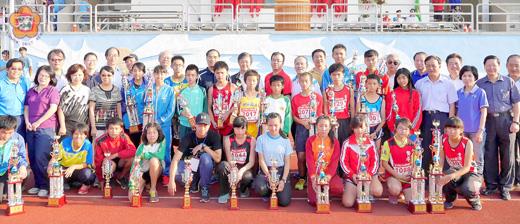 金門縣一○四學年度中小學田徑錦標賽,兩日賽程共計有六百多位選手角逐八十二項賽事,結果計有十四項二十人破紀錄。金門高中、金城國中包辦男女雙料,堪稱最大贏家;國小組則由中正國小及金湖國小稱王封后。昨在閉幕式中,金門高中將會旗交接給金湖國中,並相約下屆中小學田徑錦標賽湖中相見。 金門縣一○四學年度中小學田徑錦標賽,一連兩天假金門高中田徑場舉辦,全縣各級選手計有六百多位與會,角逐八十二項賽事,昨日下午三時三十分許舉行閉幕典禮,副縣長林德恭、教育處處長李文良、副處長陳金文、金門高中校長廖俊仁及各級學校校長、教練、選手及家長會成員等出席觀禮,與會貴賓也頒獎表揚績優團隊及破紀錄之個人。 副縣長林德恭致詞時表示,縣長陳福海因公務不克參與,他對運動之重視也不受影響,近期將擇期接見今年全運會績優選手及教練。為期兩天的中小學田徑錦標賽破聲連連,大會共頒發八萬兩千元獎金,對於運動員具正面激勵和鼓舞作用,也期待地區運動持續下向紮根,向上發展,未來有愈多的選手能夠在全國舞台發光發熱,為個人或地區爭取最高榮譽。 林副縣長也表示,運動不僅有助於強健體魄,亦能激發學習效能,對於社會更能帶動正向朝氣和活力,而打造休閒健康運動島是縣府重要施政項目之一,期待持續推展使運動在地區蔚為風尚,讓金門成為幸福健康島嶼。 典禮最後也進行會旗交接,在副縣長林德恭見證下,由金門高中校長廖俊仁交接給金湖國中校長何莉莉,下屆中小學田徑錦標賽將移師金湖國中舉辦。 金門縣一○四學年度中小學田徑錦標賽,田徑總錦標,高中職組男、女生各取一名。國中組,男、女生各取三名。國小組,男、女生各取八名。成績如后(下列成績以主辦單位公告為主): 高中職組,金門高中包辦男、女雙料。國中男生組,第一名金城國中、第二名金湖國中、第三名金沙國中。國中女生組,第一名金城國中、第二名金沙國中、第三名金湖國中。 國小男生組,第一名中正國小、第二名金湖國小、第三名柏村國小、第四名正義國小、優勝何浦國小、優勝賢庵國小、優勝金沙國小、優勝金寧中小學。 國小女生組,第一名金湖國小、第二名賢庵國小、第三名中正國小、第四名金沙國小、優勝安瀾國小、優勝古寧國小、優勝卓環國小、優勝正義國小(柏村小女績分與正義相同,比獎牌數,正義多一面獎牌)。 破紀錄: 高女鉛球:金門高中吳芳儀,成績8.73。金門高中陳渝,成績8.58。破地區同組紀錄。 高女組一萬公尺:金門高中楊鈴婷,成績47:12.3。金門高職楊采薇,成績47:35.8。破大會紀錄。 高女跳遠:金門高中林筱容,成績5.03。金門高中葉芝岑,成績4.85。破大會紀錄。 高男一百公尺,金門高職陳弘政,成績11.22,破地區同組紀錄。 高男一千五百公尺,金門高中陳彥維,成績04:10.2,破地區同組紀錄。 高男八百公尺,金門高中陳彥維,成績01:59.7,破地區同組紀錄。 高男四百公尺接力,金門高中盧嵩喆、洪紹軒、辛弘揚、陳彥維,成績00:44.3,破地區紀錄。 高女四百公尺接力,金門高中林筱容、黃瑀芊、葉芝岑、林于璇,成績00:52.0,破地區紀錄。 中女鉛球,金湖國中鄭玟亭,成績9.92,破地區同組紀錄。 中男鉛球,金城國中李胤,成績10.49,破地區紀錄。 中男兩百公尺,烈嶼國中許倬維,成績23.71,破大會紀錄。 中女兩百公尺(預賽),寧中小吳映萱,成績27.67,破大會紀錄。 小女鉛球,金湖國小歐陽恩亦,成績9.49,破地區同組紀錄。 小女六十公尺,卓環國小林沛潔,成績8.67。金湖國小莊亞筠,成績8.84,破地區同組紀錄。