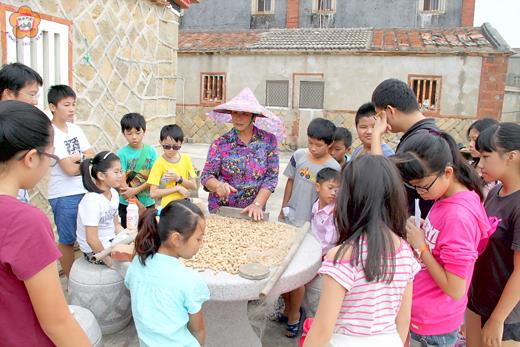 為深入社區及農村生活文化體驗花生採收,文化園區有鑑於民俗節慶、技藝與現代人生活密不可分,而傳統民間習俗與農村生活卻又日漸凋零,現代人忙碌於生活中,特別推動「夢土計畫」,以山海家園為概念,帶領學員從最初的花生製作的紅龜糕,深入農村採集花生形構文化新體驗,讓學員對土地與農民在大自然生活中的勞動領悟,藉以推廣金門農村特色文化。 該活動選在秋高氣爽,天氣和順的周休假日進行,除了報名參加學員之外,述美國小師生們也在校長劉界宏的帶領下熱情參與,並將活動納入重要戶外教學研習,其中有部分的師生們更是生平第一次的實際現場體驗而興奮不已。 在研習活動中,從事農耕七十多年之久的老農們預先將場地整過,並由村落農婦介紹操作農具的使用方法,讓學員們實地體驗,從耕地、下種、覆土、推順的耕種過程。 而在老農們的介紹下,學員也瞭解到秋收的花生約需百天的養成,要在節氣大暑時種下,歷經四十多天後頂上開花,隨後再紮根結果長花生,期間還需二至三次拔草照護,一般秋收比春成的數量少些,但是花生的美味是絕不遜色的,一樣的結實、香、脆、甜、富有油質,會愈吃愈順口,非常養生的食材。 文化園區管理所表示,金門有句諺語:「頂阿開花,下阿結籽,大人小孩愛吃甲死。」有許多好吃的食品都是花生做的,像花生湯、花生冰、花生醬、花生油、花生糖、炒花生、煮花生、辣花生、花生糕、花生貢糖、花生酥、花生荖、花生豆腐、宮保花生…不勝枚舉,花生的口味令人口齒留香,而在過去的農事生活中,花生更是重要的雜糧作物。 管理所也強調,文化的純度來自生活品味,生長在這兒的人有責任傳承,將祖先的智慧留傳下來,將生活去蕪存青千錘百鍊的成果與大家分享。文化園區串聯聚落發展文化觀光,體驗農村節慶生活,資源豐富意義深遠,就未來多元發展的方向,對文化、教育、觀光等發展的責任角色更是責無旁貸,而值得繼續推廣而努力打拚。