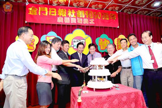 金門日報50歲生日快樂!走過半世紀,本報昨(30)日歡慶50周年社慶,除了上午舉辦登太武山健行活動、下午於植物園進行環境教育講習外,中午也於紅龍餐廳舉辦社慶聯誼餐會並表揚資深報社員工,縣長陳福海親自到場祝賀,出席來賓包括副縣長林德恭、福建省政府祕書長李智雄、縣議員李應文、縣議員陳滄江、本報社長許一傑、本報總編輯陳榮昌、金門酒廠總經理陳永明、金湖鎮長蔡西湖、金湖鎮代會主席呂瑞泰、曾任本報社長的現任教育處副處長陳金文、曾任本報社長的現任陶瓷廠廠長陳大鵬、烈嶼鄉公所秘書方小萍等人。 縣長陳福海親自到場致詞,祝金門日報社50歲生日快樂,陳縣長說,50年是很長的過程,金門的鄉親每一天早上如果沒有看金門日報,「就感覺好像缺少了什麼」,金門日報和所有金門鄉親的生活是息息相關、緊密連結,金門日報也扮演很重要的政令宣導角色,因此與整個金門社會脈動環環相扣。陳縣長說,報社每一位同仁的辛苦,縣政府都能理解,也會確保報社同仁的福利,絕對不會讓報社同仁有一絲毫的權益受損。陳縣長也特別對金門日報的記者們致意,對於縣府有些政策宣導的「關心」,希望記者同仁能夠諒解,畢竟不管好與壞,縣長都要承擔,只要任何新聞刊在金門日報上,「那就是縣長的事」,可謂禍福與共,因此難免會關心得比較「頻繁」,希望記者們能夠體諒;陳縣長強調,縣府是和報社站在一起的,「都是為了金門好」。 金門日報社長許一傑致詞時,首先感謝諸位貴賓光臨社慶,讓金門日報蓬蓽生輝;許社長說,21世紀是科技匯流的時代,大數據(Big Data)正流行,無論是開發新的商機或是用來節省成本,大數據在產業界已經掀起新的潮流,而未來的媒體也將朝向數據匯流、雲端科技發展;這20年內媒體的發展,平面媒體慢慢被網際網路所取代,即時新聞的快速發展,使得傳統媒體受到嚴厲的考驗,因此,金門日報社須要有「前瞻性的作為」來面對未來的發展與挑戰。許社長提到,金門日報的網站,將在今年進行改版與更新,利用數據匯流科技來規劃改善本報的刊登流程,提供服務數據來搶攻大數據的商機,也將更新硬體設備、提升網路新聞速度以及出報的水準,用最好的品質來服務鄉親。許社長也預告,今年報社50周年社慶,將籌劃一系列活動,近日以「金門日報與我」為主題廣泛邀稿,選在社慶前夕,連續一週以專刊方式刊出,目前已經刊出10幾篇,同時也將規劃將出版「金門日報50周年專刊」。最後,許社長感謝報社同仁長久以來的辛勤付出,勉勵同仁一起邁向下一個50年。福建省政府祕書長李智雄也強調金門日報社的重要性,他說「講什麼不重要,金門日報寫出什麼才重要」。 50周年社慶也同時表揚本報資深績優員工,包括服務滿45年的李松水;服務滿35年的陳寶玉、陳詩平、王根圍、蔡清琦、蕭宗宇;服務滿30年的陳曉琳、陳麗娜;服務滿25年的林雪菁、許加泰;資深員工均獲頒獎品及紀念獎牌。縣長陳福海也和眾貴賓一同切蛋糕和唱生日快樂歌,祝福金門日報50歲生日快樂。 金門日報前身為「正氣中華報」,緣始創於民國37年初的國軍18軍所發行於遂平的無邪報,後因時局動盪,輾轉南遷來金,又復遷台北,民國38年10月25日胡璉將軍電召報社遷金復刊,直到民國51年10月17日再遷成功村現址迄今。初始仍以正氣中華報發行,直到民國54年10月31日「金門日報」創刊後兩報並行,「10月31日」遂成為金門日報的生日。