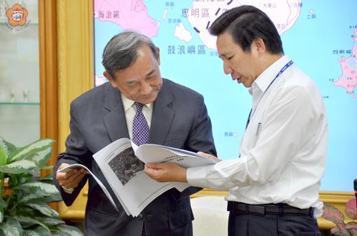法務部政務次長陳明堂昨日下午拜會金門縣長陳福海,對陳縣長建議地檢署能配合金門縣政府新行政園區及司法園區之規劃興建,一併遷移至位於原乳南二營區之基地,以及提議將位於金湖鎮金門高職旁的金門監獄遷移至水頭的福建省調查處後面,是表示將向部長報告,下星期馬上給答覆。 縣長陳福海前不久才赴法務部拜會部長羅瑩雪,說明縣府規劃的乳南二營區行政園區,將納入司法園區,並提議將位於金湖鎮金門高職旁的金門監獄遷移至水頭的福建省調查處後面。法務部長羅瑩雪對金門縣政府將負責代拆代建遷移金門監獄,欣然同意,樂觀其成。 陳縣長說,台灣民主、法治及獨立、公正的司法運作優於大陸,可供陸客參觀,可惜金門法院建築都已老舊,希望法務部先期構思規劃具代表性的司法大廈等建築,也請部長羅瑩雪有空到金門實地勘察。此外,金門監獄旁已建成十樓高的金門醫院,住院民眾可窺見監獄受刑人活動,觀瞻不好,也恐影響監獄作業。縣府覓妥在水頭的法務部福建省調查處後面空地可以遷建(當初法務部撥用五公頃、實際僅使用二公頃),縣府並願代拆代建,並盼羅部長支持。 法務部長羅瑩雪表示樂觀其成,並請縣府將地方法院、地檢署,以及金門高分檢、高分院,以及看守所、觀護所等用地一併規劃。 陳明堂昨日來金參加金門地區選舉查察分區座談會,下午一時五十分也在金門高分檢檢察長鄭文貴、金門監獄典獄長陳金峰、法務部秘書處處長楊合進、科長盧哲科陪同,拜會了縣長陳福海。在場作陪的有縣府參議翁自保、行政處長陳世保、政風處長柯偉宏等人。 縣府行政處指出,金門地方法院為提升服務品質,擬申請撥用「乳南二營區」后盤山段及石牌段等計11筆土地合計約6.88公頃,而因應「乳南二營區」地形地貌特殊性及戰地文化資產保護原則,縣府特委託顧問公司將雙乳山周邊規劃成為綠地休憩公園,並建議司法園區實需設置於雙乳山東側3公頃範圍,以供法院及檢察機關合署辦公使用。 縣長陳福海希望法務部再評估一下,只要政策定調可行,縣府就會積極來推動。陳縣長也指出,為整合金門縣政府、地方法院及地檢署搬遷後舊址利用,未來將於舊址引入觀光、休閒及購物活動,打造位於舊城區的全新人潮匯聚點,並視招商條件採全區域分期分區辦理,以多元開發方式,增加舊址開發彈性。 陳明堂也建議,金門監獄如果要遷移,則老人監獄也請規劃在此。