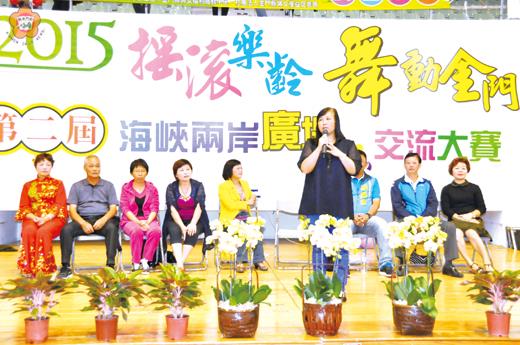 秋風送爽的季節裡!一場舞藝展現的2015搖滾樂齡舞動金門暨第二屆海峽兩岸廣場舞交流(第三場次)大賽活動,昨日在縣立體育館舉辦,總共有來自金廈十餘支社區隊伍參加,除了有兩岸腰鼓PK之外,更有東西方的精彩舞蹈表演,增進彼此舞藝觀摩和聯誼,更帶來活力和歡樂假日時光。 這場搖滾舞蹈和兩岸廣場舞交流活動於昨日下午三時三十分展開,金城鎮體育會理事長唐麗輝致歡迎詞時表示,很高興大家能夠齊聚一堂,希望未來與大陸的交流「常來常往」;尤以在舞藝的區塊,各個社區都非常的努力,並展現表演的才藝及天份,而且透過姊妹共同的努力,讓金門成為運動島。 縣府社會處副處長許美鳳指出,金門是一個健康的島嶼,老人家都很長壽,非常的健康。同時,她表示,地區的舞藝發展,在金城鎮體育會理事長唐麗輝領導之下,呈現多元化的舞藝發展,有民族舞蹈、土風舞、有氧舞蹈,除了學習成果十分亮麗,更帶動運動風氣! 搖滾舞蹈和兩岸廣場舞交流是由金門棠風舞團帶來的酬神謝平安舞曲揭開一連串的精彩舞藝交流表演,有拉丁舞蹈、腰鼓、阿美族豐年祭、拿坡里手鼓舞、張燈結綵、鼓動天地、變色長城、山地竹舞、西北雨之四季謠、青春啦啦操、今舞起、快樂拳擊舞,展現精彩舞藝和社區的活力精神。 參加的金廈社區隊伍有金門棠風團、青少年國標舞、雙瀘社區、金沙土風舞隊、傳統土風舞隊、金門高中熱舞社、潯堀社區、富康舞蹈工坊、塔后社區、南門社區土風舞隊、沙美社區腰鼓隊、古寧社區土風舞隊、金門縣土風舞協會、金門縣有氧體能舞蹈協會、新市社區土風舞隊、富康不老志工隊,他們舞藝精湛,以舞會友,展現多元舞藝發展特色和成果。 前縣府觀光處處長楊鎮浯表示,金城鎮體育會理事長唐麗輝去年就有意推動兩岸土風舞、廣場舞,以及各樣舞蹈交流活動;時任觀光處長聽到之後,覺得是一個很棒的構想,也很高興看到此一活動辦得越來越好。 最後,搖滾舞蹈和兩岸廣場舞交流活動在「兩岸齊奏和平鼓」舞曲中,劃下圓滿句點。金城鎮體育會理事長唐麗輝並頒發感謝狀給來自廈門市翔安區大嶝街首婦女聯合會、雙瀘社區文藝隊、潯堀社區文藝隊,歡迎他們組隊前來參加廣場舞交流活動,增進彼此的情誼。
