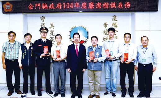 「眾生的起心動念,無不是業,無不是罪。」縣長陳福海昨在頒獎表揚本縣104年度廉潔楷模時,特別引用佛教經典的說法,他說,「人在公門好修行」,任何的起心動念都是功德的積累,而廉潔更是普世價值,也是公務員最基本的修養,希望大家都能以今年獲殊榮的本縣5位廉潔楷模為榜樣,從心做起,正心正念的在各自的工作崗位上「起心動念」,遠離惡道,邁向光明。 從政二十餘年,陳福海也說,曾經走過的路必留下痕跡,不論在哪個工作崗位,他的公職生涯時刻都在作檢討,面對廉潔這個區塊,他更期許團隊成員要小心,不過他對大家這段期間的表現很有信心,也肯定政風處在此時此刻辦這項表揚活動,非常具有意義。 這項廉潔楷模表揚活動於昨日主管會報前進行,縣府政風處表示,104年度本縣廉潔楷模選拔,全縣共有8人獲舉薦,經評審小組審核,通過本年度獲選為廉潔楷模者共計5人,分別為養工所所長王登緯、消防局隊員陳佳峻、工務處技士周至中、科長張武達及採購招標所課員許加仁。5人分別獲頒水晶琉璃獎牌及1萬元禮券。 而在主管會報中,有關金門的觀光行銷策略,陳福海說,陸客利用假日來金旅遊、採購有漸增的趨勢,針對此一族群,觀光處應思考配合推出適合的旅遊商品,以促進地方產業的共榮發展。 至於有關社區的活化,他認為初期可著眼於提升各社區活動中心使用率;運用各種活動,使其成為多元化的交誼及學習中心。而對於活動中心的使用率,他也希望能進行多方了解,有些政策,他說,我們因了解而支持,但也因了解而改變,只有納入更新的創意,政府的施政才會更清楚、更讓人民了解。 而短期對大陸事務,他也認為應採臨時編組較為可行,請觀光處籌組專案辦公室,配置專職人員、調用合宜人員參與,並具體研提近期對陸事務策略,先提政策小組討論。 對陸行銷牛肉肯定存在障礙,但他也強調,團隊的每顆都有每顆螺絲釘的能量,他要的是如何落實還有鏈接此議題,看執行力也看結果論,期待團隊成員不要鄉愿,也要找可堪大任者共赴事功,當然,我方也要保有主動出擊的精神,先邀請廈門肉品廠商抵金踏勘,由他們來提出問題,我們再來一步步的思考解套。 而有關幾條主要計畫道路的拓寬或興建,他也提醒公部門毋需配合民眾的「無限上綱」,但在規劃時亦應設身處地思考兼顧民眾利益;或可評估以區徵政府配地做為換地標的,或將容積率轉移到「更有潛力」的區段,增加民眾參與的誘因。 另外,大陸引水工程多數費用由縣府負擔,他認為並不合理,此也攸關縣自來水廠的日後組編或改制;請工務處協同水廠擬製說帖,近期他願意至水利署拜會。 養工所人少事雜,他說,除在人力、經費上應予全力配合外,亦應就其組織功能及特性,思考更全面的組編興革作法,以利所務永續發展。另外整潔金門的美名也要繼續維護,其他小細節則請養工所整合。 而體育場跑道修復縱有諸多因素,但他認為,造成民眾使用不便是事實,應引以為鑑,並落實相應的配套規劃,縱然實質將造成民眾不便,亦要令其感受到縣府的「用心」與「貼心」。 此外,針對青創工作,他強調不能只說不做,而有關傳統建築活化利用的具體作法,宜由建設處召開青年代表座談會研議;先了解青年朋友們需要什麼,再來規劃辦法會比較契合需求。 尤須一提者,他強調公辦業務原則上都不要「與民爭利」,但也要鼓勵創新性的業務開拓及合作;此節可透過產業平台(如:縣商會)多作溝通及研商,讓產業輔導更具實益性。至於有關觀光公車票價的訂定,他認為應多傾聽旅行業者的想法,謀定而後動。 最後,陳福海也作了五項裁示: 包括深度旅遊(如:戰地巡禮等)及目標客群(如:賞鳥客等)的開發始終未見成效,此也是金門旅遊價格普遍低落、品質無法提升的主因;請觀光處研擬專案推廣,務必於農曆年前看到成果。 另「五鄉鎮,五亮點」計畫具體進度為何?他強調規劃應側重在「亮點」的選擇,並以旅遊帶進行主題配套;其規劃成果並應透過座談會、媒體等向民眾說明,讓鄉親清楚知道我們相關的規劃期程。 而有關中和四眷村的改建,議會十分關心,但縣府現在並沒有立即開發的迫切性;惟為確保本縣土地利用效益,仍請財政處擇一處於明年啟動都更開發,兼具測試市場反應。 已交辦觀光處發行的「縣政季刊」;他也請各局處指派窗口負責供稿及資料提供,並請觀光處同步規劃辦理各局處人員訓練,以順遂後續工作推動。 至於金門日報的興革,他認為應嘗試作主題性、不同角度的深入報導,並朝向溫馨、功能性的社區報紙發展,也期待有更多關心地方發展的人才,能在這份地方報,多提供一些公領域且有益世道人心的論述。