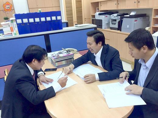 爭取金門權益,金門縣長陳福海於23日利用立法院總質詢期間,陳縣長拜會行政院秘書長簡太郎,力爭攸關民眾權益的離島建設第七、九條修正案。同時,陳縣長向簡太郎抗議有關口蹄疫區排除及核廢料事件,簡太郎在聽取陳縣長報告後,他表示將協調相關部會能以金門鄉親需求為考量來審視離島建設條例修正案,對於抗議內容也將請業管單位儘速回復縣府避免造成誤會與爭議。 陳縣長是在立委楊應雄、縣府民政處長王中聖陪同下,於23日下午前往立法院國民黨團辦公室拜會行政院秘書長簡太郎。陳縣長向簡太郎說明,由於金門公共設施用地多為私有地,以道路用地為例,私有地即佔道路用地總面積55%,若辦理徵收,補償金將高達數百億元,因此希望透過修正離島建設條例第九條能讓縣府以區位較好的國有非公用土地來跟私有地做交換以減少財政支出。 陳縣長同時也以金門大橋為例,向行政院爭取放寬重大建設投資計劃,得由大陸地區廠商參與投標;陳縣長說,金門與台灣本島條件環境迥然不同,有關重大機具設備及大量人力都需仰賴台灣本島輸運,不僅耗時花錢又增加工程時間,但一水之隔的中國大陸在重大建設的技術與設備都不輸台灣本島甚至超越許多;因此,希望修正離島建設條例第七條,放寬未來金門的碼頭橋樑、大型建物等工程投標限制。 對於日前農委會向世界動物衛生組織(OIE)申請口蹄疫非疫區時,未經充分溝通就將金門排除於非疫區外。陳縣長也向簡太郎表達嚴正抗議,陳縣長說這將嚴重影響未來金門的活體動物及產品銷台,同一個國家怎會用兩種制度對待離島居民?陳縣長更痛斥農委會對於檢體送驗過程是否詳實無受污染未確切檢討,對地區產業也沒有提出復甦補助計劃,就強勢將金門排除實在很惡劣。 陳縣長也對近日原能會傳出將把核廢料暫存金門無人島的訊息,他感到很不滿!陳福海說,金門鄉親為了核廢料議題早已走上街頭抗議過,金門不用核電卻要被當成核廢料的暫存地,過去當了數十年戰地,現在好不容易揮別戰爭陰霾又來了核廢議題,陳縣長沈重呼籲中央別把離島人再次逼上街頭。 對於金門縣政府的提案與抗議訴求,簡太郎表示,得知陳縣長要親自跑一趟時,已要求各部會針對金門縣府的議題作研究,有關離島建設條例的修正將協調內政部等相關單位審慎重視,對於口蹄疫區等抗議內容,簡太郎直說中央不會隨意地將金門一線切割,將要求業管的單位儘速派人向縣府溝通報告。
