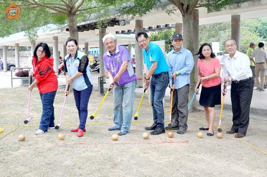 由金城鎮公所辦理第五屆「金城盃」木球錦標賽,昨日上午在金城鎮莒光湖公園木球場開打,總共四組十二支球隊七十多位選手參賽。 金城盃木球錦標賽開幕典禮昨天上午八時四十分假莒光湖湖畔的木球場舉辦,由金城鎮長石兆瑉主持,縣議員陳滄江、縣府教育處科長王麗娟、金門體育會副秘書長鄭清南、金城鎮鎮代表倪于媃、金門農工校長劉湘金、金城國中校長許維民、鎮公所秘書黃同慶、課長盧玉美等人以及參與的球隊出席與會。 金城鎮長石兆瑉指出,金門的木球發展具有國際水準,在金門大學管理學院院長董燊博士的推展協助之下,地區木球運動風氣越來越盛行,金門有很好的木球運動場地,希望有更多的銀髮族一同來參與休閒運動,以球會友,超越自我,打出健康、幸福,共同營造金門的健康島。 議員陳滄江表示,木球是很好的運動,感謝石鎮長舉辦木球賽推展木球運動,木球運動老少咸宜,球友們藉由球賽交流球技、培養情誼,身體更健康。 包括王麗娟科長、鄭清南副秘書長、倪于媃代表也都致詞肯定木球運動是金門最適合全民運動的球類之一。 鎮長石兆瑉也與到場的貴賓一起為球賽開球,為一連二天的木球賽揭開序幕,同時上場完成一道次木球賽,體驗木球的休閒樂趣。 金城盃木球賽比賽組別共分社會男子組、社會女子組及健康快樂男子組、健康快樂女子組。共有包括運休系友會、U-100隊、標記小吃、老農莊、金水隊、運一菜鳥隊、勳源隊、吳厝隊、木球實習生、金門高中、金門農工、金城國中等十二支球隊七十多人參加。 金城盃木球賽預定於今日下午四時三十分在金城莒光木球場舉行頒獎閉幕典禮,頒獎表揚團體賽、雙人賽、個人賽、一桿獎、教練獎等優異的隊伍與選手。