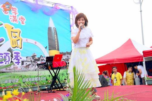 許加泰/圖文 芋頭季一系列活動,昨日下午推出節目表演,台語歌后黃妃演唱經典歌「追追追」,掀起活動的熱潮,互動氣氛飆到沸點。 表演活動,由芋頭季代言人張希愛帶來律動歌曲、天爵樂團也熱力開唱,互動唱跳,還穿插小魔術表演。 當「追追追」的前奏音樂一下,現場氣氛歡聲熱絡,歌后黃妃蓄勢待發的聲音衝力,擄獲現場觀眾的心,鄉長洪成發和觀眾一起報以掌聲。