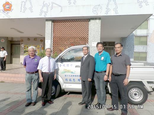 城中第十九屆校友楊瑞忠回饋母校,熱心教育,捐贈母校貨車乙輛,受到全校師生暨教育處李文良處長、校友會理事長陳滄江議員、金城鎮鎮長石兆瑉的感佩。 城中校長許維民特別安排在全校升旗典禮上舉行隆重贈車儀式,專程前往觀禮的李文良處長對楊瑞忠關心母校,勇於捐輸,回饋母校的善行允為學習的典範,值得讚揚與肯定,特代表縣長對楊瑞忠熱心教育、回饋母校表示致謝之意。 縣議員陳滄江也代表城中校友會感謝楊瑞忠校友回饋母校的善行。陳滄江說,現今社會有錢的人很多,但像楊瑞忠校友肯於回饋社會者,則如鳳毛麟角,這種善行確實令人欽佩,相信一定會感染更多的城中人,一同來幫助母校的發展;此外,他也期待學弟們將來事業有成,效法楊瑞忠學長,共同關心母校,母校城中將以你們為榮。 許維民校長表示:楊瑞忠校友小時家境窘迫,但意志堅強,後來從軍報國,退伍後投入商場,起起落落,歷經無數次的奮鬥,毅然從谷底爬起,一路戰戰兢兢,經商有成,熱心回饋。楊瑞忠的奮鬥故事與回饋感恩之心,更值得所有學弟們的學習與效法。 楊瑞忠校友事前得知母校亟需貨車乙輛,即主動向許校長表示,受母校師長栽培之恩,願捐貨車乙輛,表達對母校感恩之意。許維民對楊瑞忠校友經商有成、熱心教育、嘉惠母校、澤被杏壇表示感佩,特別在全校師生的升旗典禮上,表達謝忱之意。