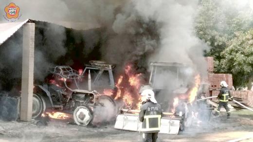 烈嶼鄉雙口18-1號旁鐵皮倉庫昨日上午發生火警,現場火勢猛烈,大量濃煙及火舌不斷由現場竄出來,燒毀多輛農用機具,燒毀面積約40平方公尺,所幸無造成人員的傷亡,詳細起火原因則由消防局火災調查科進行鑑定中。 縣消防局救災救護指揮中心於昨日上午9時13分接獲民眾報案,指稱雙口18-1號旁鐵皮倉庫起火燃燒,情況十分危急。指揮中心立即派遣烈嶼分隊前往搶救,並由轄區第一大隊副大隊長董必文擔任指揮官,計出動各式消防車4輛、救護車1輛及消防人員8名、義消人員5名。 烈嶼消防分隊指出,該分隊車組於前往途中即見濃濃黑煙竄向天際,帶隊官立即回報指揮中心。抵達火場後,發現為鐵皮構造內部停放多輛農用耕耘機具起火燃燒,火舌及大量濃煙不斷從各機具燃燒竄出,因鐵皮內停放多部農用車輛,其燃油及輪胎燃燒快速,火勢在消防人員抵達前即迅速全面燃燒,並有向旁邊住宅延燒的危險,指揮官除指示幕僚針對進出火場搶救之人員進行安全管制外,並指派搶救人員有效佔用現場消防栓,隨後指揮官立即下達周界防護及直接利用泡沫向火場正面進攻,水線部署方面則指揮搶救人員由火場正面部署兩條水線進行滅火攻擊,並派員至起火鐵皮倉庫後方進行周界防護,避免火勢擴大延燒,最終得以將火勢在最短時間內侷限,防止危害擴大。 烈嶼消防分隊表示,此次火警在消防及義消人員投入搶救下,火勢在上午9時41分獲得控制,隨即進行殘火處理,於上午12時42分完全熄滅,無人員傷亡,共造成多部農用機具受燒損,合計燒毀面積約40平方公尺,詳細起火原因則由消防局火災調查科進行鑑定中。