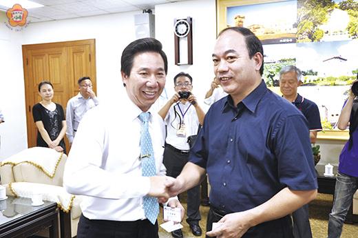 大陸泉州市委常委、宣傳部部長陳慶宗一行,昨抵金參加2015世界閩南文化節同時,傍晚前往金門縣政府拜會縣長陳福海。陳縣長以兩岸一家親,泉金又有很深歷史淵源,未來自大陸接水也將從晉江來,是建議在延伸旅遊的市場對接和協助推銷金門高粱酒多給予助力。 陳慶宗也以自己在2001年時任南安市委書記、南安市長時,就曾循小三通來過金門,並在2012年世界閩南文化節在台北舉行時,就曾到訪金門對民宿和閩南文化讓他相當懷念。他指出,泉州市現有人口826萬,基於溯源歷史和海峽兩岸同根同源,也建議陳縣長擇期到泉州走一趟考察、交流。 縣長陳福海也以金廈生活圈已然形成,兩岸交流日益熱絡,金門和泉州未來也能在延伸旅遊市場做對接,來增加兩地旅遊人口和促進消費。並請陳慶宗部長協助推銷金門高粱酒。 而昨在場作陪有金門縣文化局長呂坤和、副局長黃雅芬及縣府秘書許金象、觀光處科長何桂泉等人。 記者莊煥寧/議會報導 泉州市委常委、宣傳部部長陳慶宗率團,昨日前往議會拜會,受到議長洪麗萍與副議長謝東龍、議員及議會主管接待。洪麗萍指出,閩南文化是兩岸共通的話題,希望透過文化的交流,促進兩岸感情,共創雙贏。陳慶宗也歡迎洪議長率團到閩南文化的原鄉泉州參訪交流。 參加2015世界閩南文化節泉州代表團是由泉州市委常委、宣傳部部長陳慶宗領軍抵金,成員包括泉州市委統戰部副部長王慶祥、泉州市人力資源和社會保障局長陳傳平等一行十多人昨日上午十時三十五分許由縣府秘書許金象陪同前往金門縣議會拜會,受到議長洪麗萍、副議長謝東龍、議員蔡春生、張雲德、李應文,及秘書長洪允典、議事主任陳勵志、總務主任楊誠國、會計主任汪秋明、秘書朱國華等人熱烈歡迎。 議長洪麗萍歡迎泉州代表團一行到訪,她指出,閩南文化源遠流長,具有傳統性、連續性特徵,且不斷發展,金門保存很多豐富完整的閩南文化,世界閩南文化節在金門舉辦,非常適切,而且閩南文化是兩岸共通的話題,未來希望持續透過文化的交流,促進兩岸感情,加強兩岸合作機會,共創雙贏發展。 陳慶宗部長也熱誠歡迎洪麗萍議長率團到泉州參訪交流,他說,某種意義上來說,泉州才是閩南文化的原鄉,中華文化基金會在海峽東岸台灣文化研究,他們也都有這個共識,金門原屬泉州同安縣,後來設縣,當時是屬於泉州的轄地。 副議長謝東龍也提到,金門古老拜天公一些習俗中也有第幾「都」的稱呼,這與泉州轄內也有一些地名也是以什麼「都」來做為地名,可以從中證實早年的隸屬關係。 陳慶宗指出,去年金門接下承辦今年世界閩南文化節,讓原鄉泉州蠻感動,從那時候開始,他就決定今年一定要來金門參加這個活動。