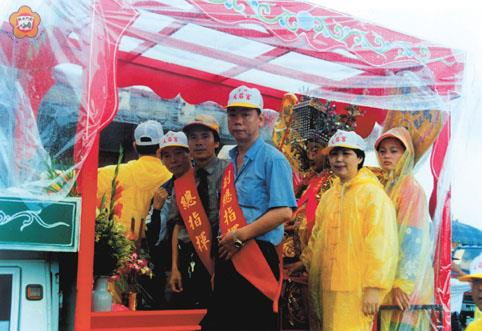湄洲媽靈佑浯土金門久旱逢甘霖近百輛鑾駕車隊昨遶遍烈嶼大小村落金門最後一天遶境巡安活動在大雨中劃下完美句點