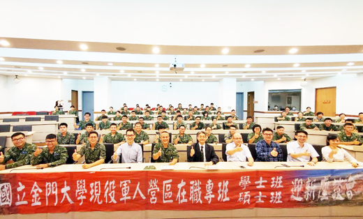 國立金門大學為協助具現役軍人身分的學生能專心學習,俾能順利完成學業,在該校陳開蓉演講廳舉行「現役軍人營區在職專班新生開學典禮暨迎新座談會」。會中除歡迎今年錄取的大學部35名及碩士班10名新生之外,軍人專班新舊生137名學生也利用座談會的機會進行學習上的交流。 金大副校長陳奇中表示,現在是一個學習型的世代,科學管理之父--泰勒曾經說過:「我時刻盼望自己多學一點東西,常為自己見聞有限而感到不足。」這體現的是一種學習的主動性和緊迫感,也勉勵國軍班同學本著持續學習進步,跟上AI時代腳步的來臨,並透過經營管理理念的培養,將管理思維運用到軍中的工作崗位上,實踐保家衛國的神聖任務。 陸軍金門防衛指揮部副指揮官張永文少將特別參加交流座談會。張永文勉勵學生,金大有優良的學習環境,藉由學校的進修課程,強化軍職人員學習能力。他並期許有志自我提升的國軍弟兄,可以邊工作、邊讀書,希望大家努力學習,在各專業領域有更深刻的探索,入寶山並滿載而歸。此外,他更希望弟兄們在學成之後,可以將所學貢獻於部隊,吸引更多同袍進修,提升部隊人力素質,同時開創屬於自己的斜槓人生。 金大表示,該校管理學院與金門防衛指揮部合作開辦的現役軍人營區在職專班,今年已邁入第四年,碩士班已經有兩屆畢業生,共計14名學生完成學業,明年度學士班將會有第一屆畢業生。