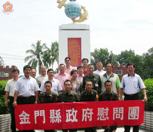 金門縣政府99年組團赴台各訓練中心慰問入營役男,縣長李沃士對金門子弟兵入伍服役備極關心,除致贈加菜金外,同時一再叮寧役男打電話回家報平安,在炎炎夏日要多喝水補充水分防中暑,遇有問題可向縣府民政局尋求解決。 關懷入營的金門子弟,由縣長兼團長李沃士領軍的役男慰問團,自7月21、22日兩天從台灣頭至台灣尾跑透透,分別至台中成功嶺、台南官田、左營海軍中心、屏東龍泉等訓練中心探慰役男,目前在台各訓練中心入營的金門子弟兵有一百零八人。 李縣長首日抵台中成功嶺及台南官田,看到役男們個個精神抖擻,臉上氣色也很好,代表家長們感謝軍中長官的照顧。役男們向李縣長獻唱軍歌「男兒立志在沙場」及「勇士進行曲」。他勉勵役男好好鍛鍊身體,有健康身體才能追求美好人生。 縣府民政局長兼副團長翁伸金也逐一關懷役男受訓心得,並且勉勵役男下部隊時至有關單位,應聽從指示做好分內工作,為國家為社會盡一份義務,未來回到社會都是有用的人,同時也感謝各訓練中心的長官對金門子弟兵的關照,受到役男歡迎與感動。 這次赴台慰問役男團的成員包括各鄉鎮長、兵役課長、里幹事、民政課長、鄉鎮代會主席、軍友社金門連絡組長等共20人,其中有成員因公務在身,首日慰問行程後先行返金,整個慰問行程昨圓滿告一段落。