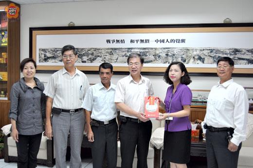 桃園縣金馬離島文教協會理事長胡宗暐率隊到福建省政府拜會,秘書長曾華德熱忱相迎,並簡報指出近期在主席薛承泰的努力下,金、馬有諸多重大建設都有了歷史性的推展,也肯定該協會傳揚暨保存金馬文化,對兩離島未來發展彌足重要。 桃園縣金馬離島文教協會第三屆理監事金門參訪團,由理事長胡宗暐率隊,抵金展開為期三天的參訪行程,昨日下午四時蒞抵福建省政府,受到秘書長曾華德、一組代組長洪進祿、秘書陳國興、組員翁素英等熱情接待。 秘書長曾華德指出,該協會的組成闡釋省縣一體、金馬一家的精神。省主席薛承泰上任以來勤走基層,為金馬之建設努力,近期也看到具體成果,包括馬祖土地問題、台馬輪更新進入協調中、機場之改善等;金門大橋興建定案、技術學院升格大學、衛生醫療健康島醫療大樓之興建、免稅島購物天堂、水資源問題等;甚至隨訪問團至南洋宣慰僑胞,將這些重大建設消息傳給僑胞,讓其對故鄉發展有進一步瞭解,也期盼能一同參與完成,為金、馬寫歷史。 曾華德也表示,金馬同為離島,屬兄弟關係,情誼深厚,過去又同為海防前哨,從戰地轉型為觀光地區,若要從歷史、文化之中一窺脫下戰地外衣的金馬發展方向,文教之發展脈絡為首要,肯定協會之努力,保存傳承兩島文化。 胡宗暐代表致贈「勤政親民」紀念牌給省主席薛承泰,感謝其率領省府團隊,對於金馬兩地之發展所做的努力。