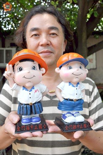 南瓜帽、西瓜皮的髮型、白襯衫與超短的藍色短褲,這是五○年代國小學生的裝扮,是不是讓你覺得超眼熟、也超懷念的?中正國小最近在知名陶藝家王明宗(也是校友)的精心設計下,打造出一組男女各一的「城小寶寶」,王明宗表示,中正國小曾在砲火中成長茁壯、開枝散葉,期盼透過這組撲滿公仔讓校友、畢業生能永遠懷念母校,時刻都能回憶求學的點滴。 中正國小校長張峰德表示,歷史悠久的中正國小創立於民國四年,從當初的縣立第一高等小學,以至數度易名如浯江小學、珠浦中心、城廂、金門示範中心國民學校、金城中心、金城國小,到民國六十七年三月二十一日為感念先總統 蔣公德澤,始定名為中正國小,且從民國三十四年以後到目前,畢業校友已達一萬三千餘人,在社會上都能發揮所長、貢獻所能,同時在歷任校長、教職員工生、家長等共同努力,學校愈來愈具規模,目前已經成為地區首屈一指的小學,且是兩岸三地來金交流時的重點學校。 身為校友的王明宗說,中正國小見證金門的過往歲月,幾十年下來,學校雖歷經慘烈的戰爭洗禮,但仍屹立不搖,還培育出無數的金門菁英,堪稱是各行各業人才培育的搖籃,包括福建省主席吳金贊、將軍暨省主席顏忠誠、許乃權(退役將軍暨前社會局長)、將軍周軍橋、知名律師黃怡騰、本報社長黃雅芬、企業家盧文韻、金城鎮長石兆日、前金城鎮長蔡輝詩、金門技術學院校長李金振、文化局長李錫隆等人,可謂校友遍佈海內外與橫跨各領域、階層。 王明宗提及,這些校友雖然在海角天涯的一方,但仍心繫母校、懷念母校,他在與校長商議過後,決定設計出不一樣的紀念品,希望藉這組公仔,讓校友、畢業生都能珍藏求學時的珍貴回憶。 由於已經畢業三、四十年,為了設計這款「城小寶寶」,王明宗可是煞費苦心,因為早期相機屬於違禁品,相片在當時更是難得一見,王明宗找了好久,好不容易找到一張他兒時參加學校棒球賽的泛黃相片,並透過放大鏡找到身旁「小觀眾」的穿著,才成功打造出這款卡哇伊的公仔撲滿。 王明宗表示,中正國小家長會長王林斌目前已訂購五百組「城小寶寶」,除了贈送給本屆畢業生外,未來也將當作學校城鄉交流的紀念品,讓屬於金門的兒時回憶,也可以傳達到各縣市去。 透過這組公仔,王明宗希望傳達母校在砲火中成長茁壯,散發自由學風的獨特性,也勾起五年級生兒時成長的情景,再度重溫「當我們同在一起」的甜美回憶。